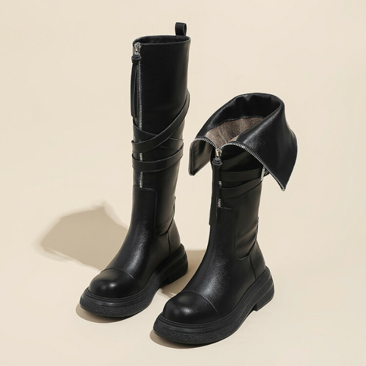 フロントジップブーツ 折り返し ブーツ レディース靴 ブーツ ワーク 特集 ブラック ブラウン 35(22.5cm) 36(23cm) 37(23.5cm) 38(24cm) 39(24.5cm) 40(25cm)