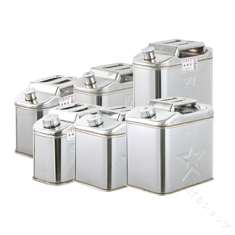 1. ガソリン携行缶 軽量ステンレス製 5L竪型4.5口径 10L竪型4.5口径 15L竪型4.5口径 20L竪型4.5口径 5L竪型3.5口径 10L竪型3.5口径 15L竪型3.5口径 20L竪型3.5口径 10L方型4.5口径 20L方型4.5口径 25L方型4.5口径 30L方型4.5口径 35L方型4.5口径 40L方型4.5口径 10L方型3.5口径