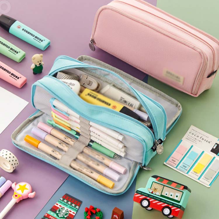 ペンケース 大容量 筆箱 小物入れ 男 文房具 事務用品 筆記具 ペンケース 人気 グリーン ピンク ブルー ネイビー イエロー ブラック