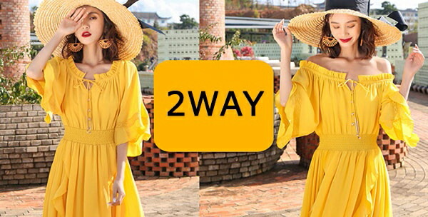 2WAY リゾートワンピース リゾート レディースファッション 新登場! イエロー ホワイト S M L 2L(XL) 3L(2XL)