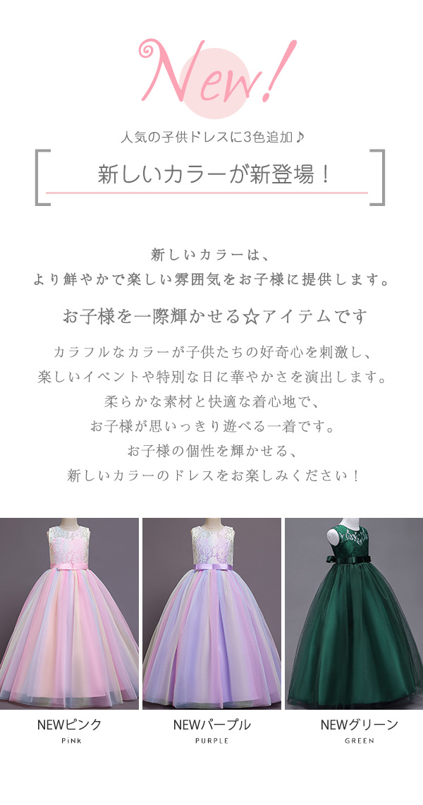 ドレス 女の子 ピアノ発表会 中学生 キッズ ドレス 続々入荷中 NEWピンク NEWパープル NEWグリーン ネイビー ワインレッド グリーン ブルー ピンク パープル シャンパン ホワイト グレー レッド 120 130 140 150 160 170