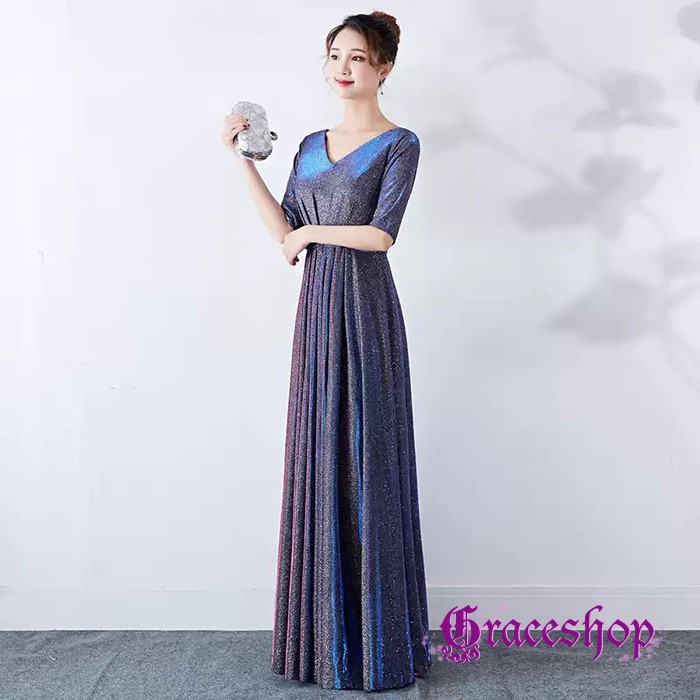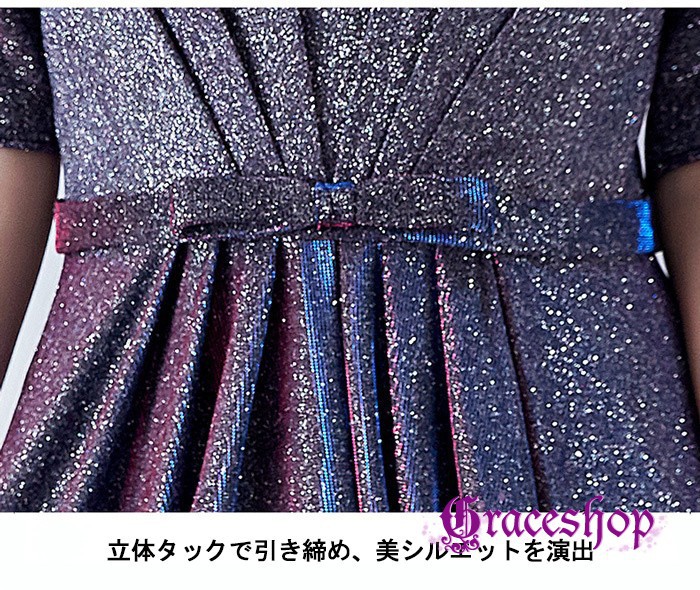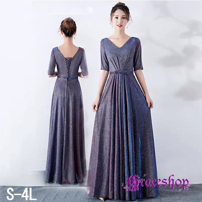 イブニングドレス パーティードレス レディース マキシワンピース ロング丈 Vネック 半袖 キラキラ お呼ばれ 司会者 披露宴 謝恩会 コーラス 演奏会 編み上げデザイン 上品 可愛 フォーマルドレス