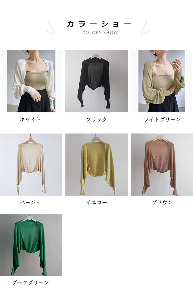 サマーニット ボレロ レディース カー レディースファッション 続々入荷中 S M L XL ホワイト ブラック ライトグリーン ベージュ イエロー ブラウン ダークグリーン