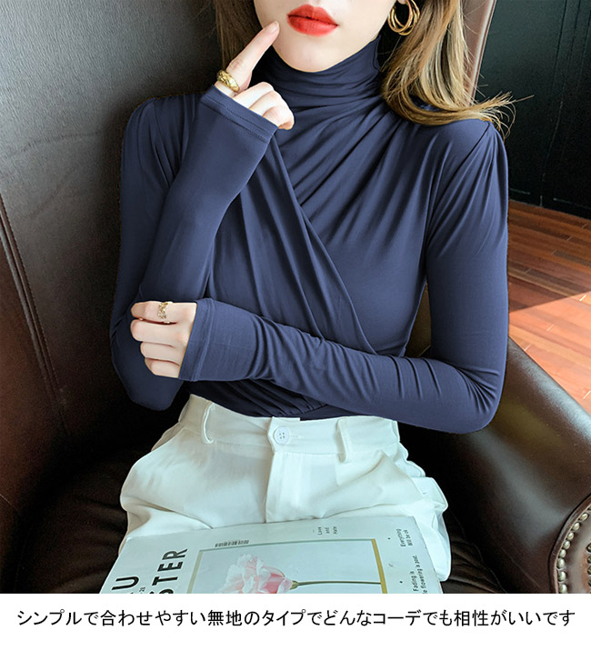 長袖シャツ レディース インナー 無地 トップス Tシャツ カットソー 人気 ブルー ブラック