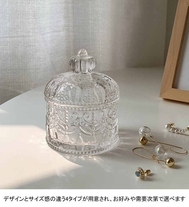透明 小物入れ フタ付き ガラス キャ 1 2 3 4