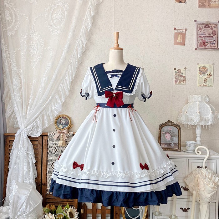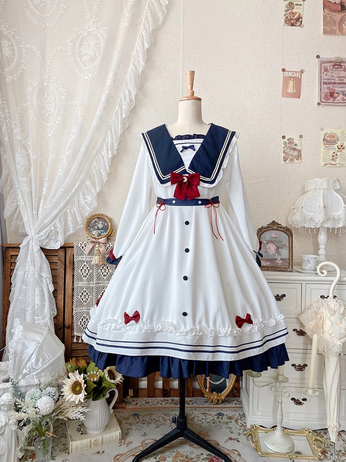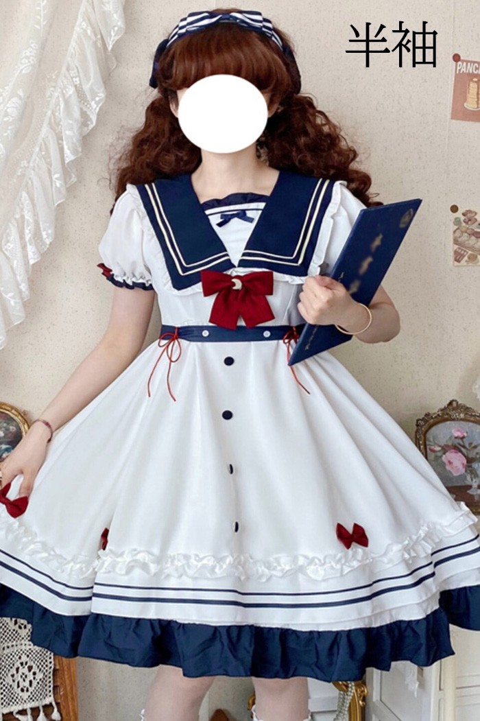 セーラー服風 ワンピース レディース レディースファッション 超目玉商品 半袖 長袖 S M L 2L(XL)