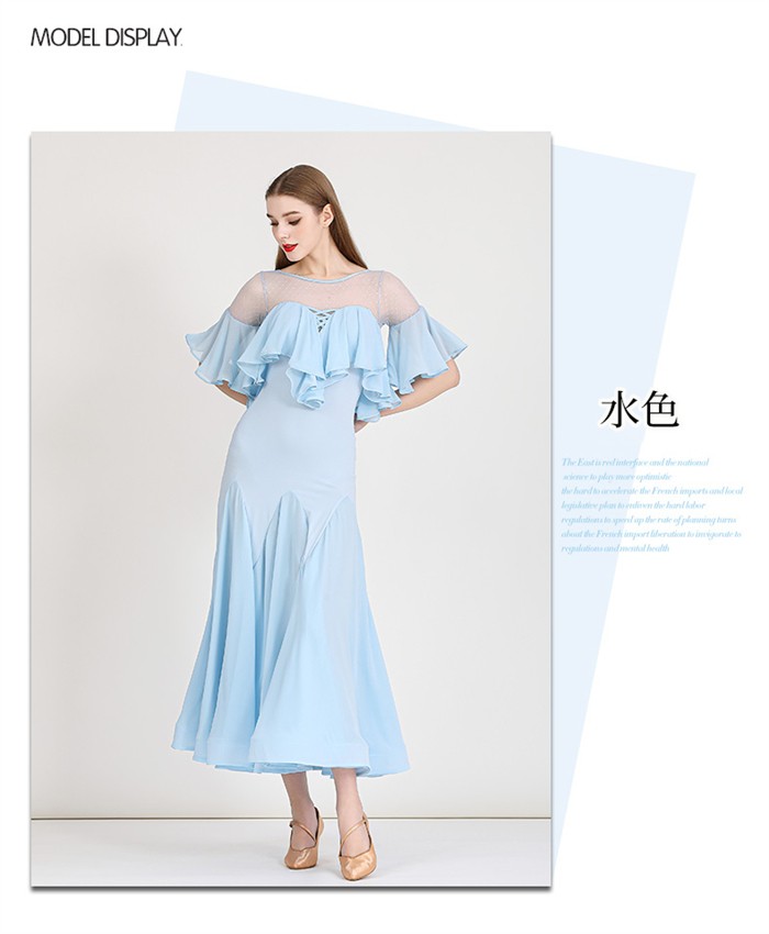 社交ダンスドレス レディース S~3L 体操 ダンス 社交ダンス ウェア 人気 パープル 水色 イエロー S M L 2L(XL) 3L(2XL)