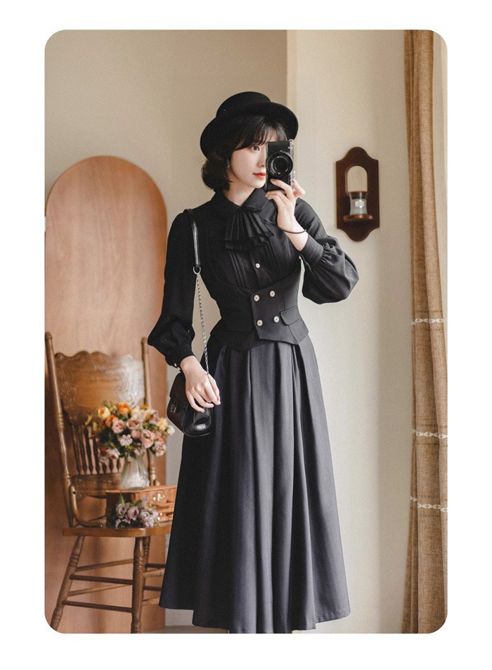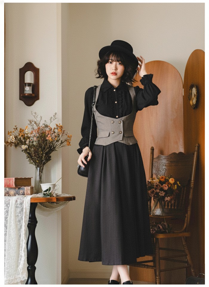 ▸ 黒・茶・グレーの落ち着いたカラーで、ブラウスやワンピースに合わせるだけで上品な印象に仕上がります。ゴシック・レトロ系だけでなく普段使いにも馴染みます。by Happysunny