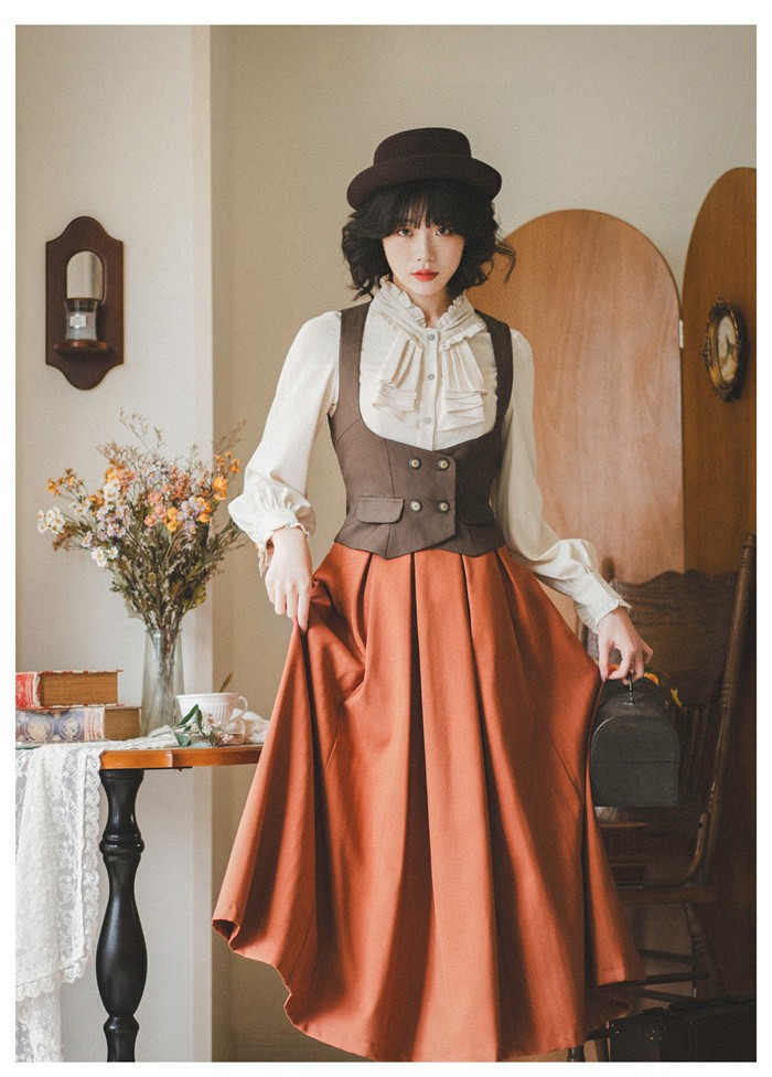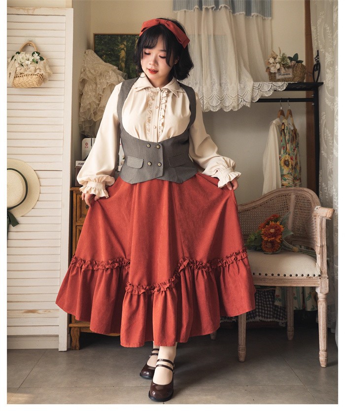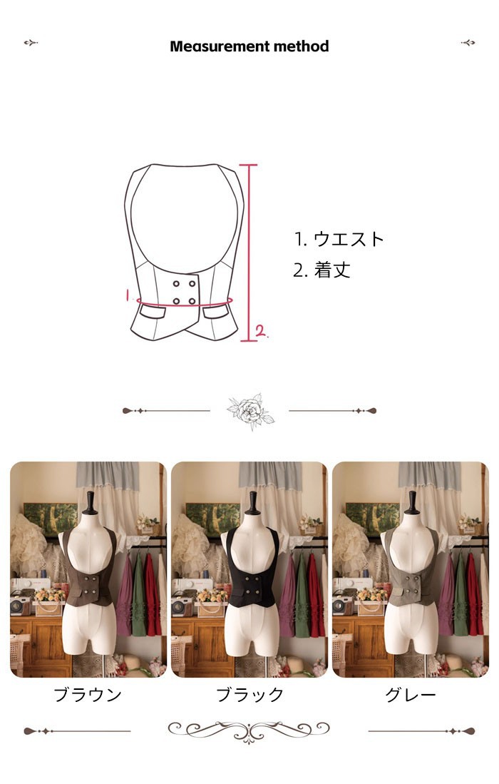 ロリータベスト レディース コルセット風 ベスト S~3L くびれ強調 ウエストマーク 黒 茶 グレー クラシカル ゴシック レトロ 上品 大人可愛い ブラウス合わせ 秋冬 お出かけ カフ 体型カバー