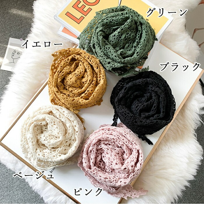 スカーフ レディース レース 三角スカ バッグ 小物 ブランド雑貨 超目玉商品 ブラック イエロー グリーン ベージュ ピンク