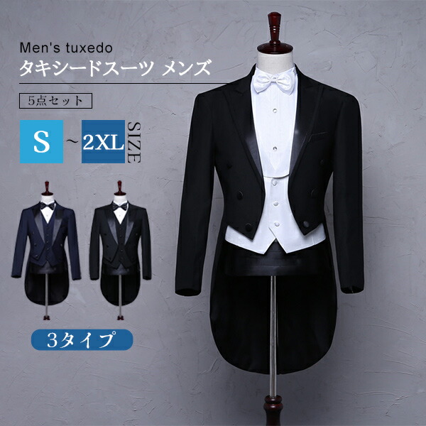 タキシードスーツ メンズ 5点セット スーツ セットアップ 礼服 豊富 S M L XL 2XL サイズ指定 ブラックA ブラックB ネイビー