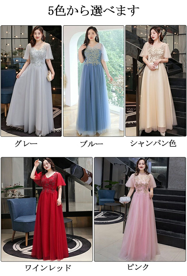 ロングドレス 演奏会 ドレス 大人 ピ ドレス 新登場! L XL 2XL 3XL 4XL 5XL 6XL グレー シャンパン色 ワインレッド ピンク ブルー