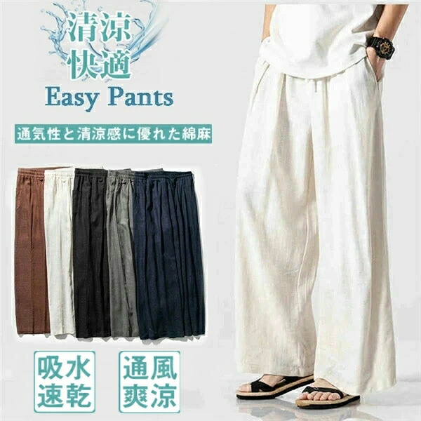 ワイドパンツ メンズ リネン 麻 ラウ メンズファッション 早い者勝ち M L 2L(XL) 3L(2XL) 4L(3XL) 5L(4XL) 6L(5XL) ネイビー ブラック ブラウン ホワイト ダークグレー