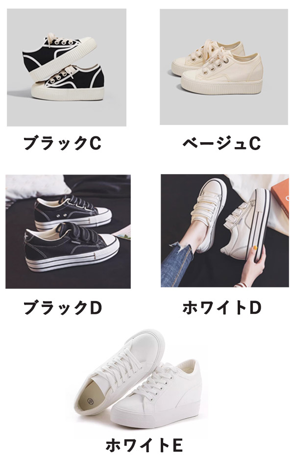 厚底 スニーカー レディース インヒー 靴 人気 22.0 22.5 23.0 23.5 24.0 24.5 ブラックA ブラックB ホワイトB ブラックC ベージュC ブラックD ホワイトD ホワイトE