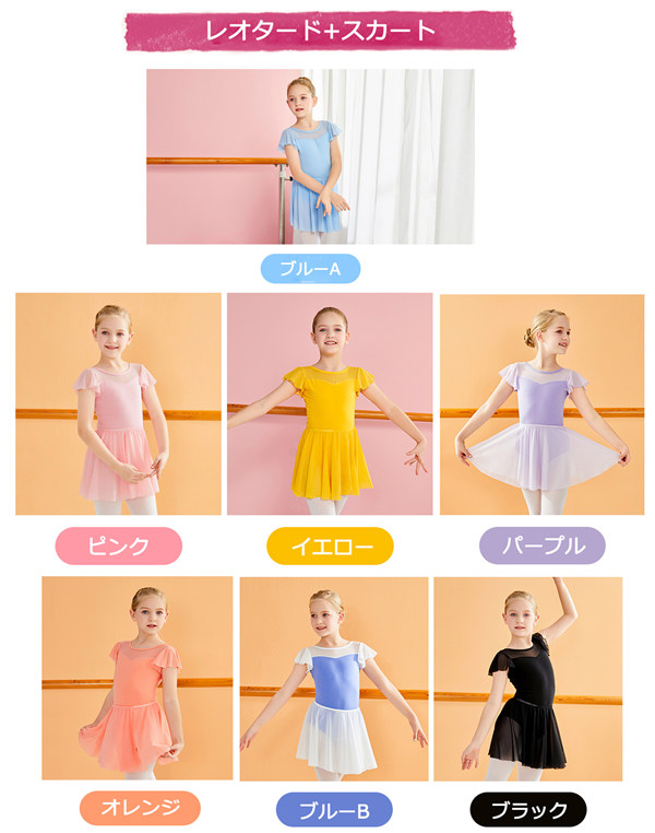バレエ レオタード 子供用 コットン 綿 セパレート スカート付き ジュニア 黒 ストレッチ 伸縮 練習用 レッスン着 新体操 人気 おすすめ バレエ用品 水色 ブラック 黄色 オレンジ パ イエロー