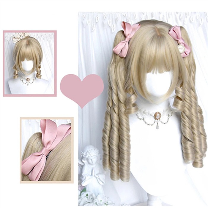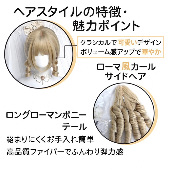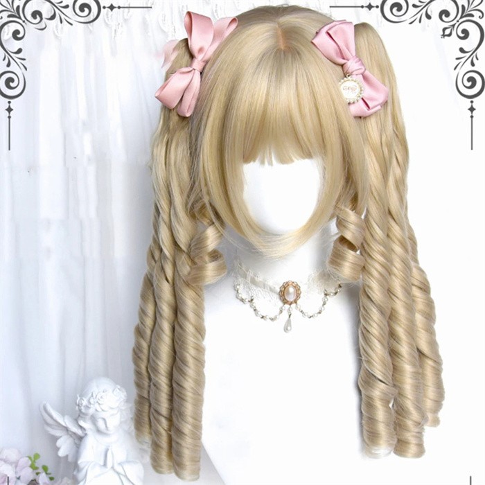 ウィッグ ロリータ ツインテール 金髪 ロング カール 姫系 フルウィッグ レディース 可愛い メイド風 クラシカル ゴスロリ 耐熱 かつら wig 原宿系 コスプレ イベント パーティー 仮装 撮影