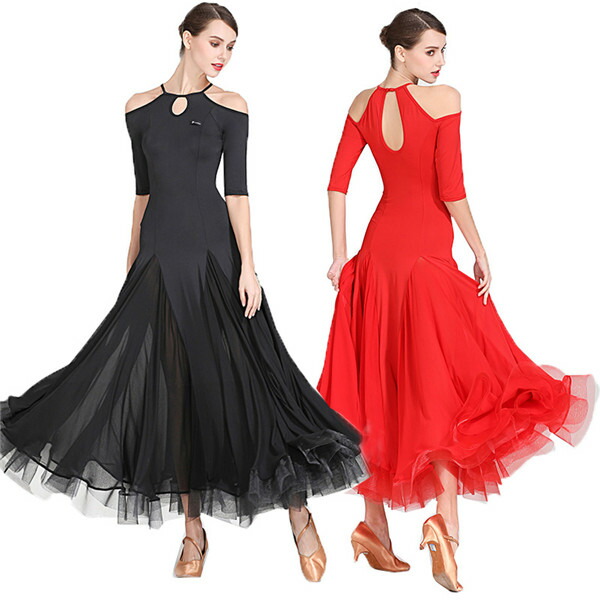 タンゴドレス 社交ダンス モダンドレス スポーツ アウトドア 通販 S M L XL 2XL レッド ブラック