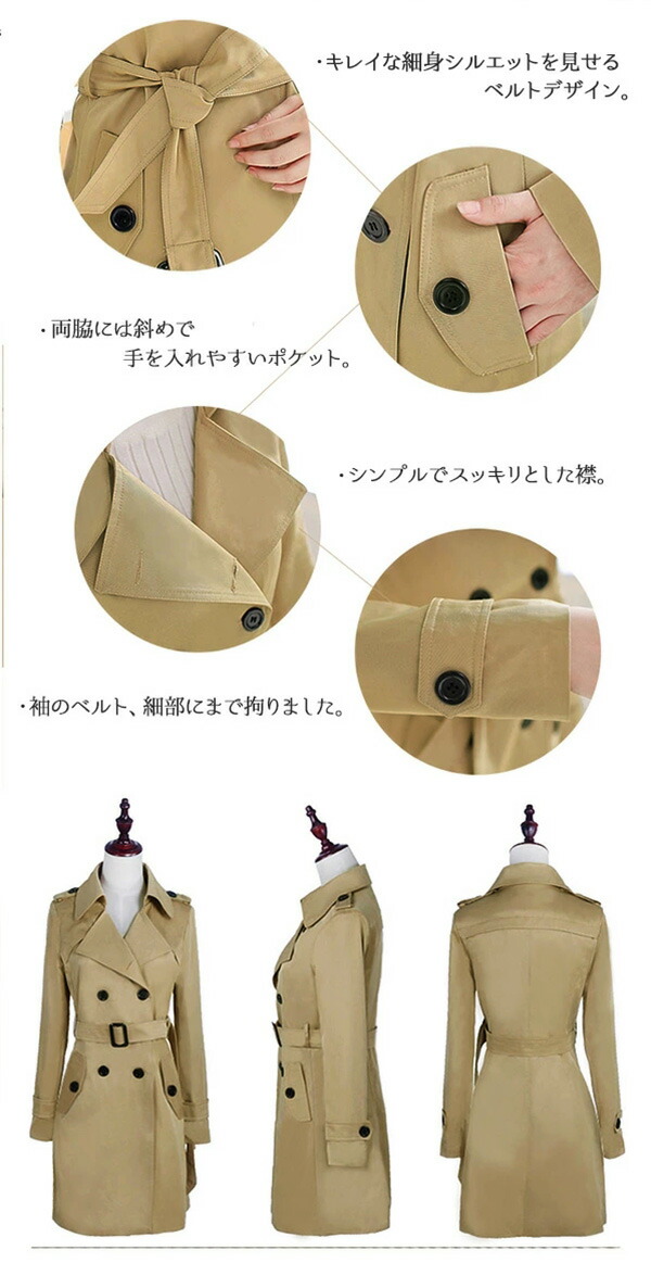 スプリングコート レディース トレンチ コート ジャケット 豊富 S M L 2L 3L 4L 5L 6L 7L 8L ベージュ ブラック ワインレッド ネイビー ライトベージュ レッド