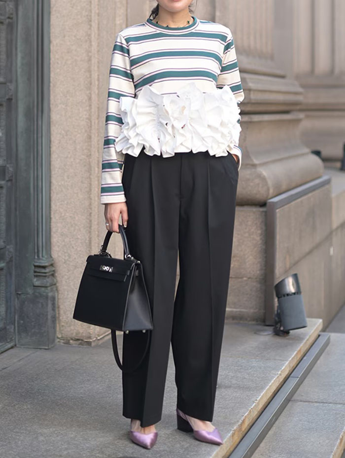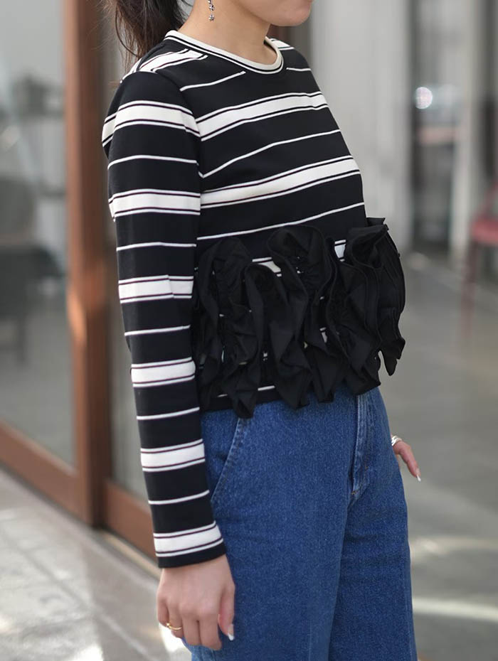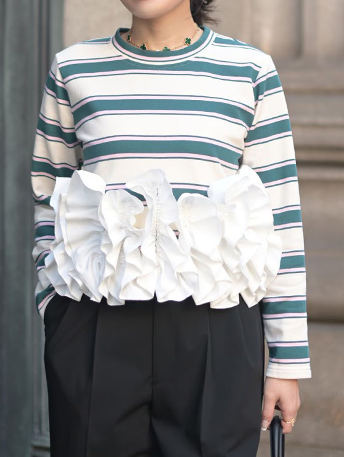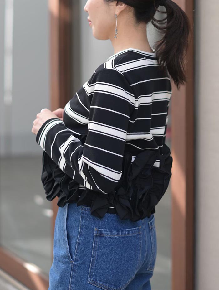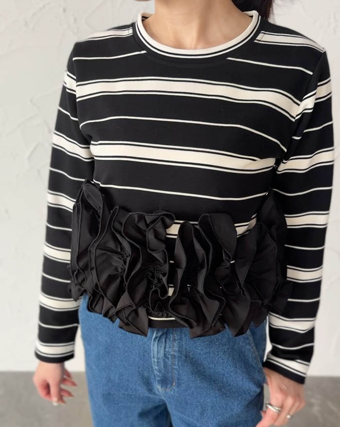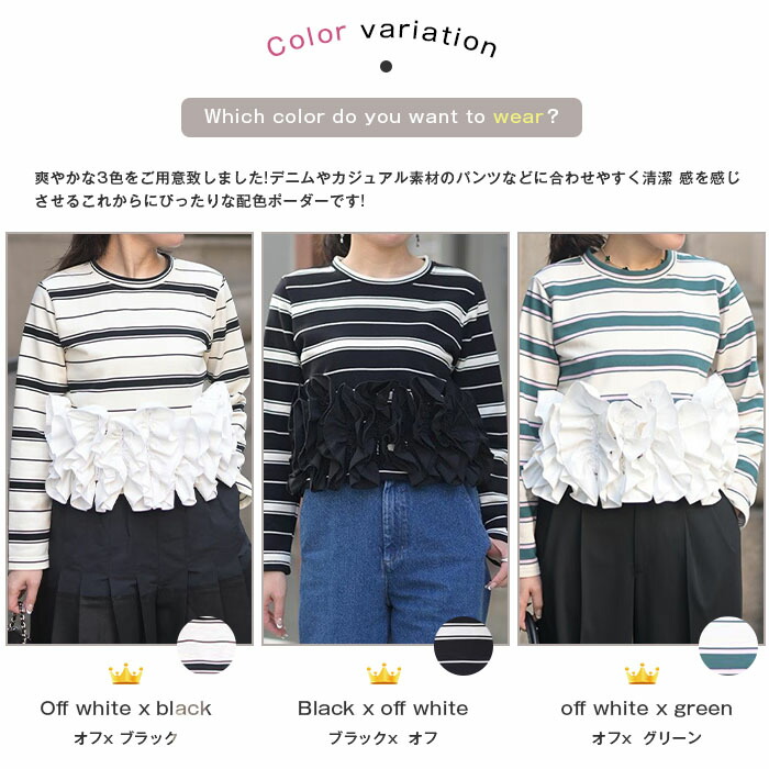 フリル トップス 長袖 カットソー ペ トップス Tシャツ カットソー 通販 オフx ブラック ブラックx オフ オフx グリーン
