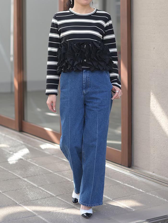 デニムパンツ ビジュー付き