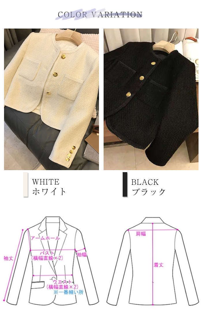 ツイードジャケット ジャケット レディ レディースファッション 豊富な品揃え ホワイト ブラック S M L XL
