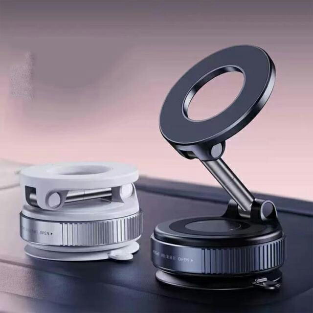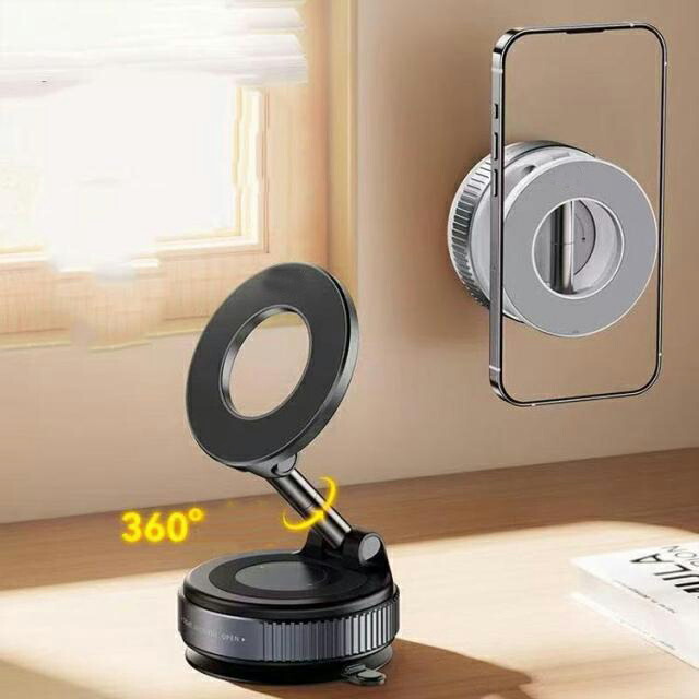 【強力なMagSafe固定機能】スマートフォンの固定はMag-Safeマグネットで行い、付属のメタルプレートを使用することで、非Mag-Safe対応の機種でも利用可能です。用途や設置場所に応じて、Mag-Safeマグネットによる固定と真空吸着を使い分けることができます。