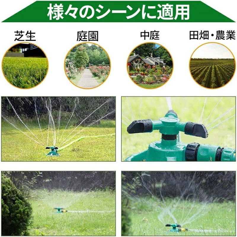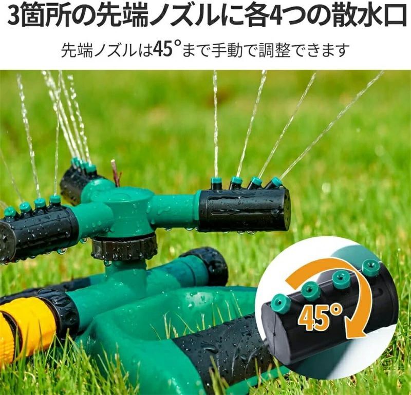 園芸用スプリンクラー 回転式スプリンクラー ミストシャワー 芝生 散水機 360度 3方向 広範囲 芝管理 花壇 調整可能な角度15-45°