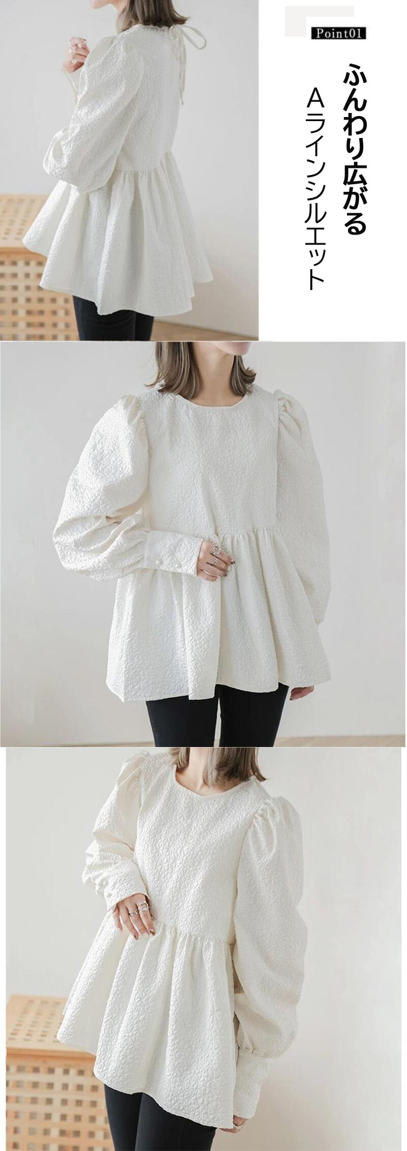 ジャガードブラウス エンボス加工 Aラ トップス シャツ ブラウス 新登場! M L ブラック ホワイト ピンク グレー