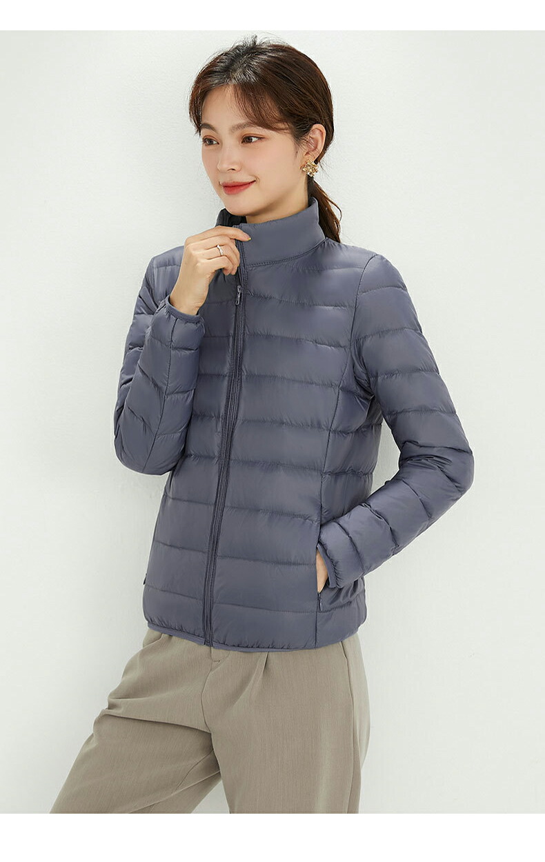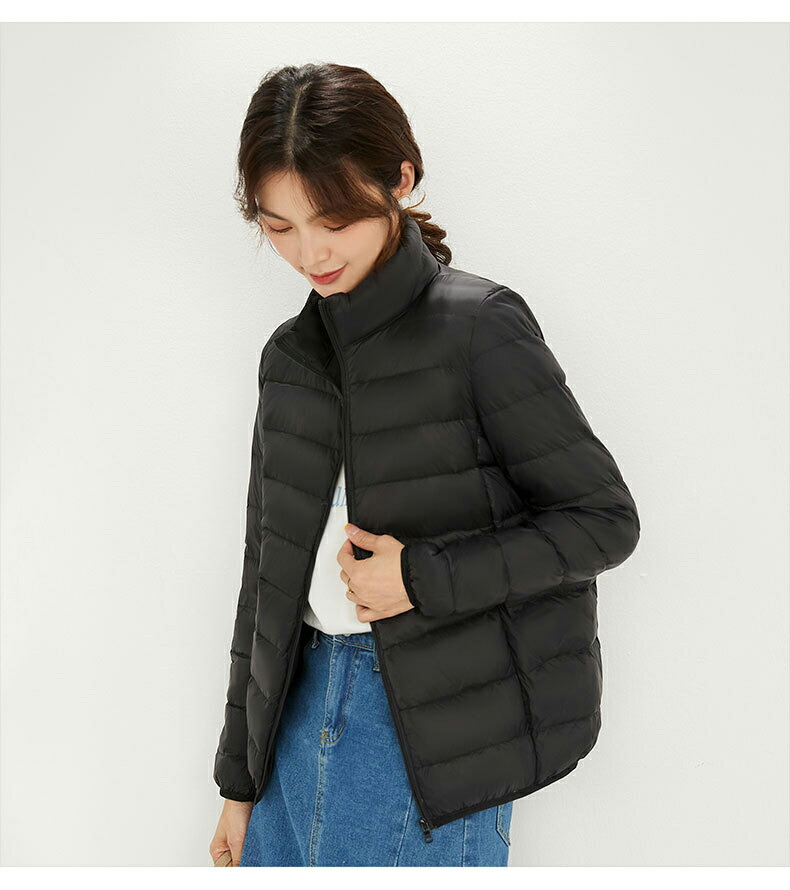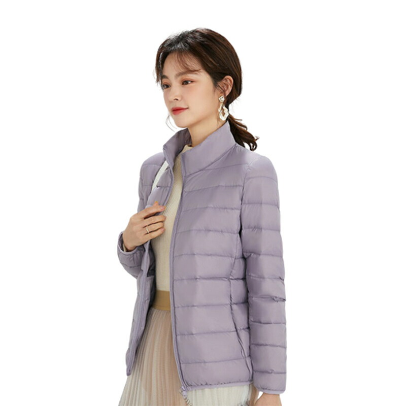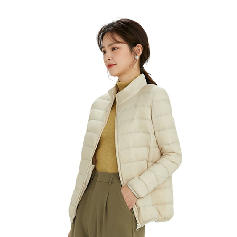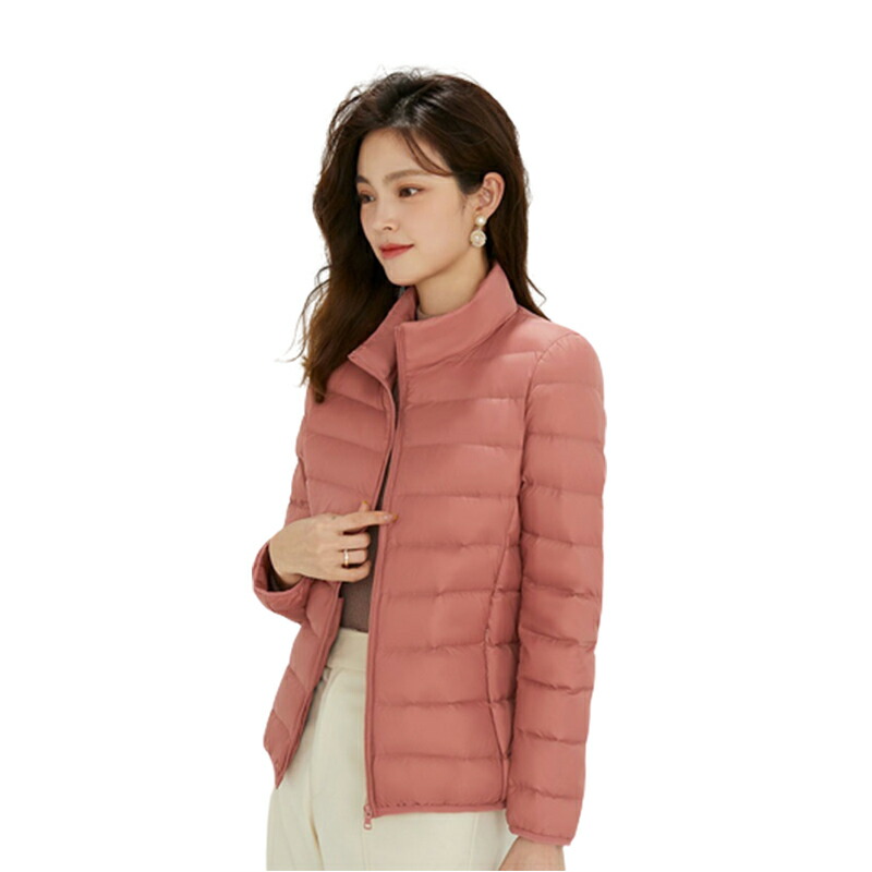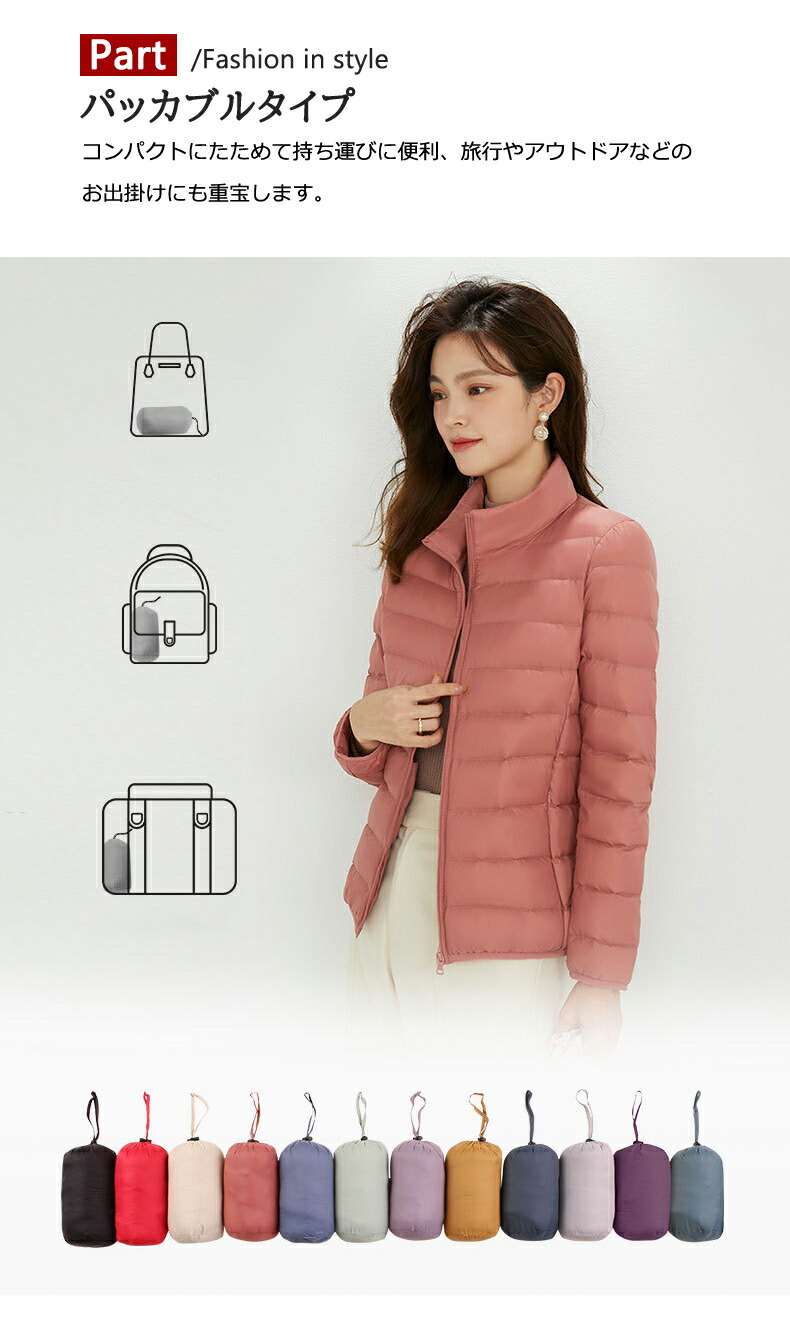 ダウンジャケット レディース コート ジャケット ダウンコート スタンドカラー 軽い 防寒 撥水加工 シンプル ショート丈 収納袋 ポーチ付き コンパクト アウター 秋 冬 大人 おしゃれ 通勤 春