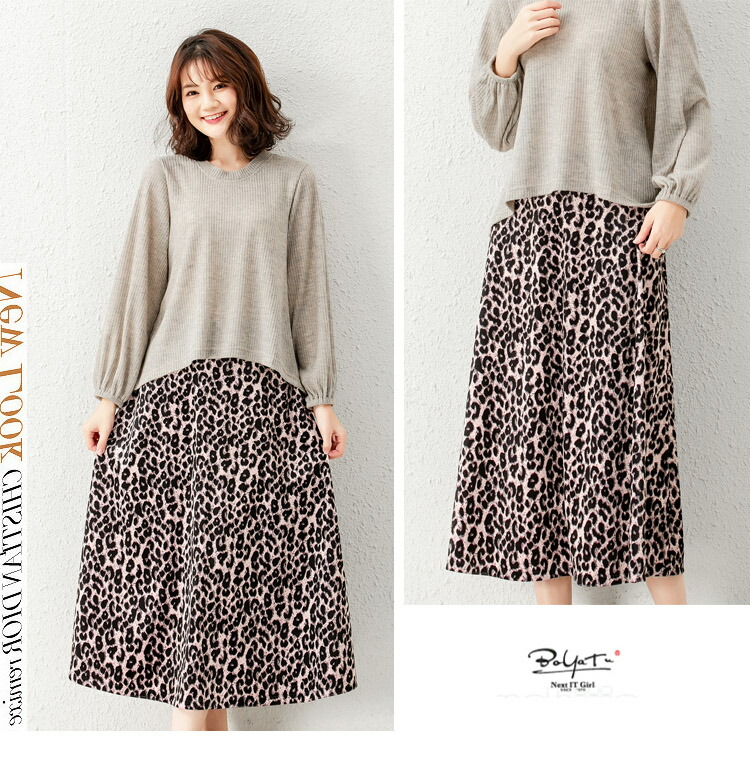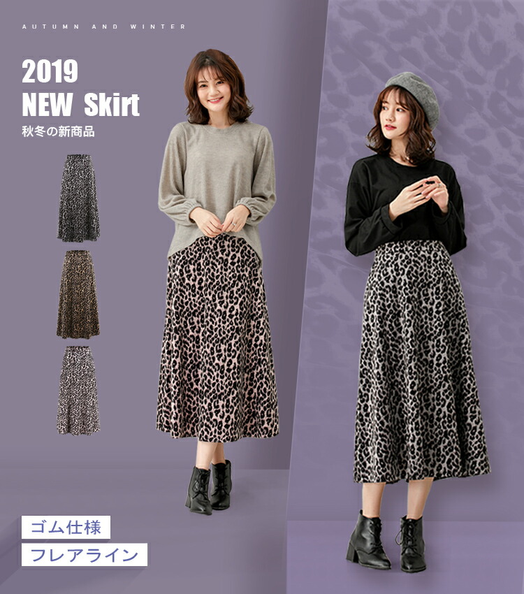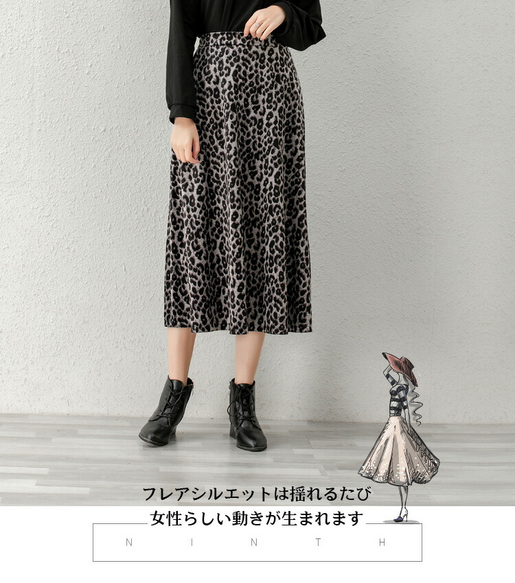 レディース ヒョウ柄 ロングスカート ボトムス スカート 通販 グレー ブラウン ピンク