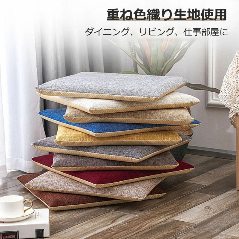 座布団 低反発 綿麻 フロアクッション ブルー グレー ブラウン イエロー カーキ レッド ダークグレー ベージュ コーヒー ライトグレー 円角 40x40厚4cm 正角 40x40厚4cm 円角 45x45厚5cm 正角 45x45厚5cm 円角 50x50厚5cm 正角 50x50厚5cm