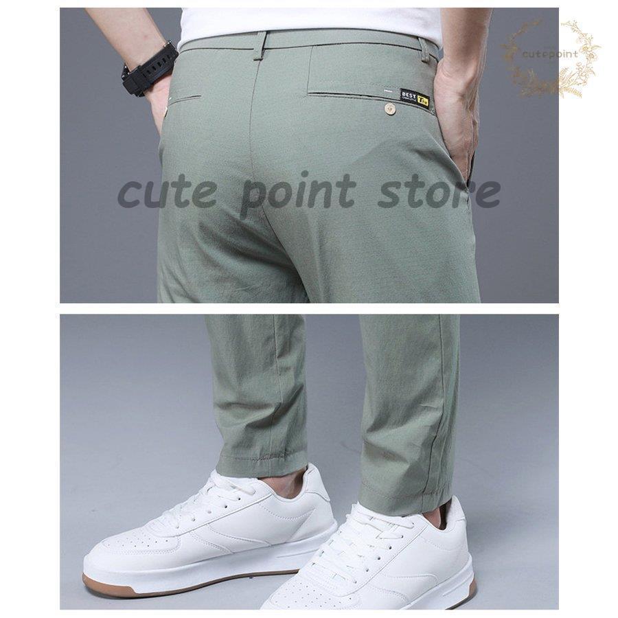 涼しいズボン メンズ ストレッチ 接触 ズボン パンツ 続々登場 アップルグリーン 黒 グレー ベージュ 28 29 30 31 32 33 34 36