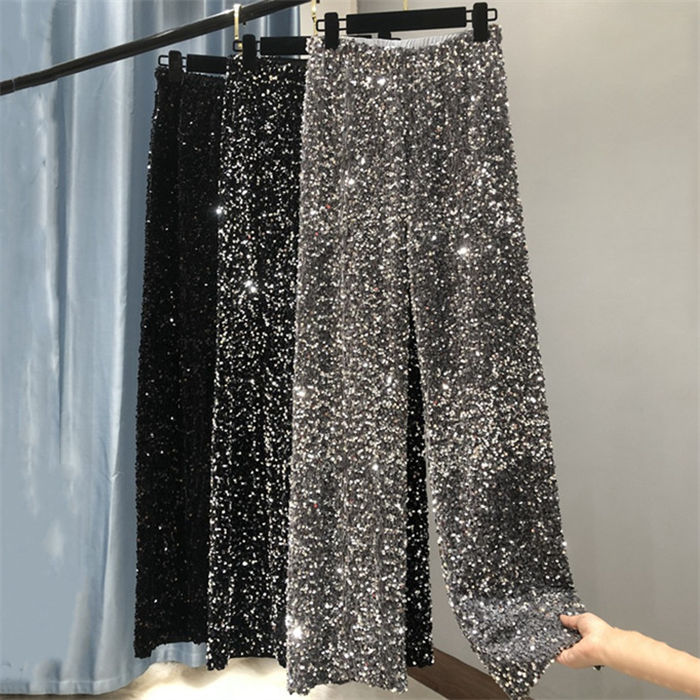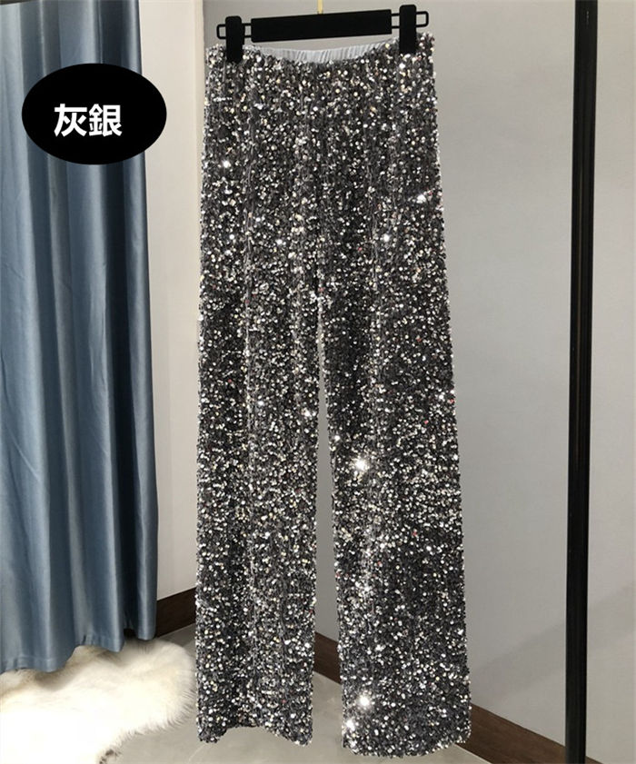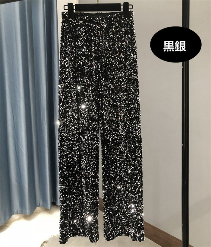 ダンスパンツ 光沢 きらきらのパンツ レディースファッション 新登場! 真っ黒 黒銀 灰銀