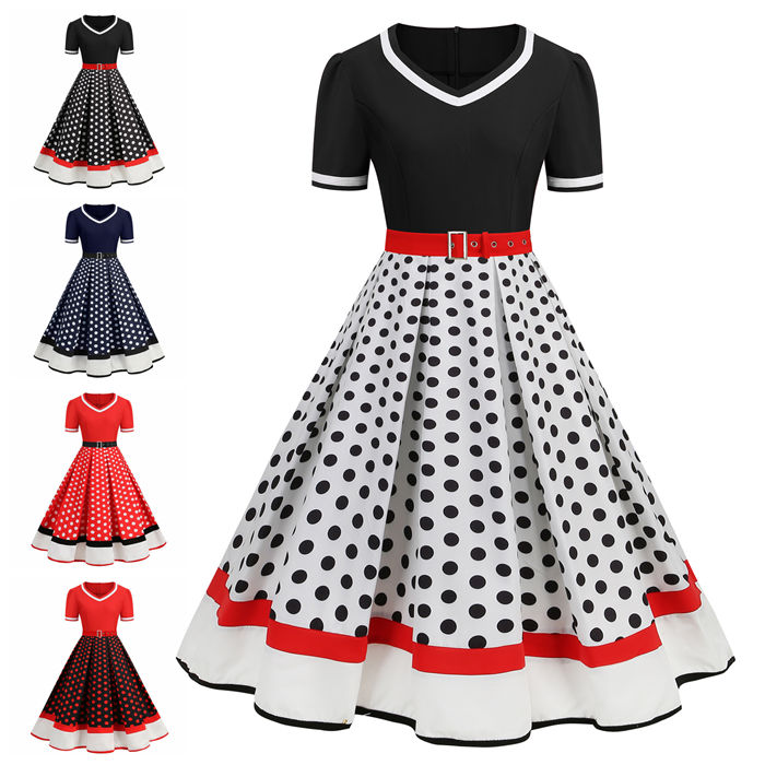スイングワンピ レトロワンピース レデ レディースファッション 超目玉商品 黒&白 ピンク レッド ネイビー ブラック 黒&赤 S M L XL 2XL 3XL 4XL