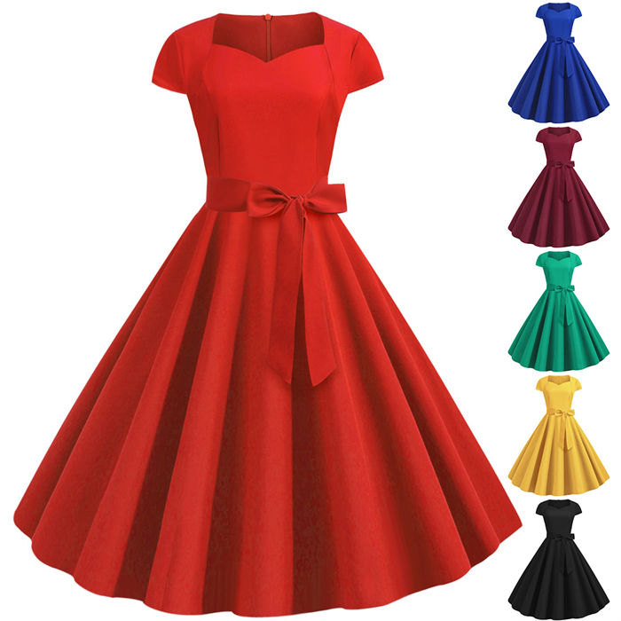 カラフルドレス レトロワンピース レデ レディースファッション 超目玉商品 イエロー レッド ワイン グリーン ブラック ブルー S M L XL 2XL