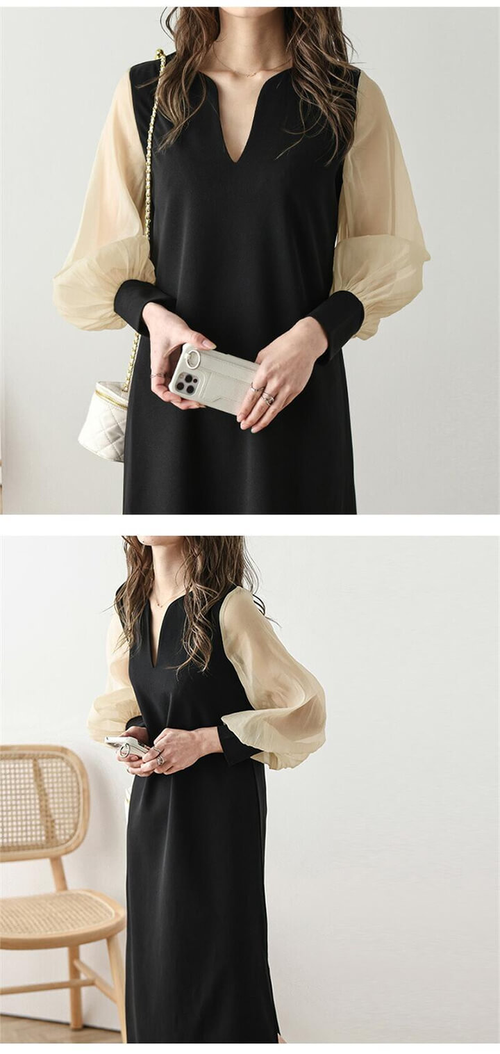 2A50 異素材ワンピース レディース ワンピース 新登場! M L ベージュ ブラック
