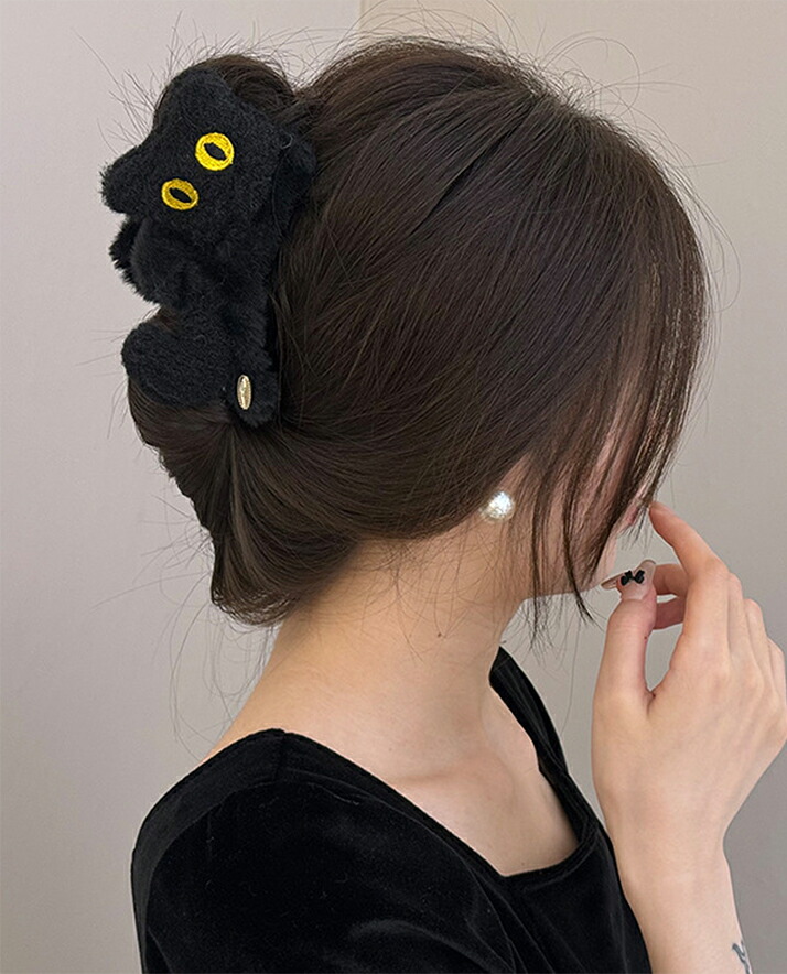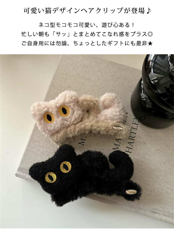 可愛い猫型バンスクリップ モコモコ 2 レディースジュエリー アクセサリー ヘアアクセサリー ヘアクリップ 人気 ベージュ ブラック