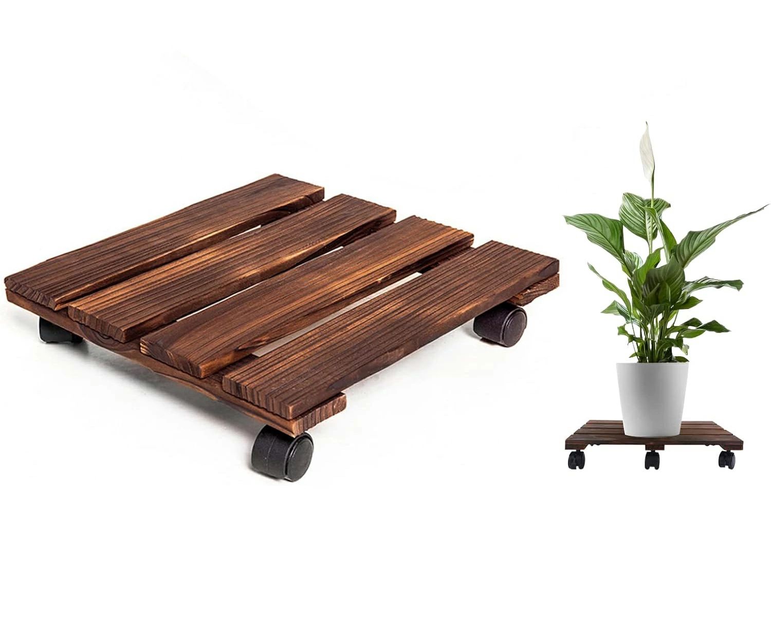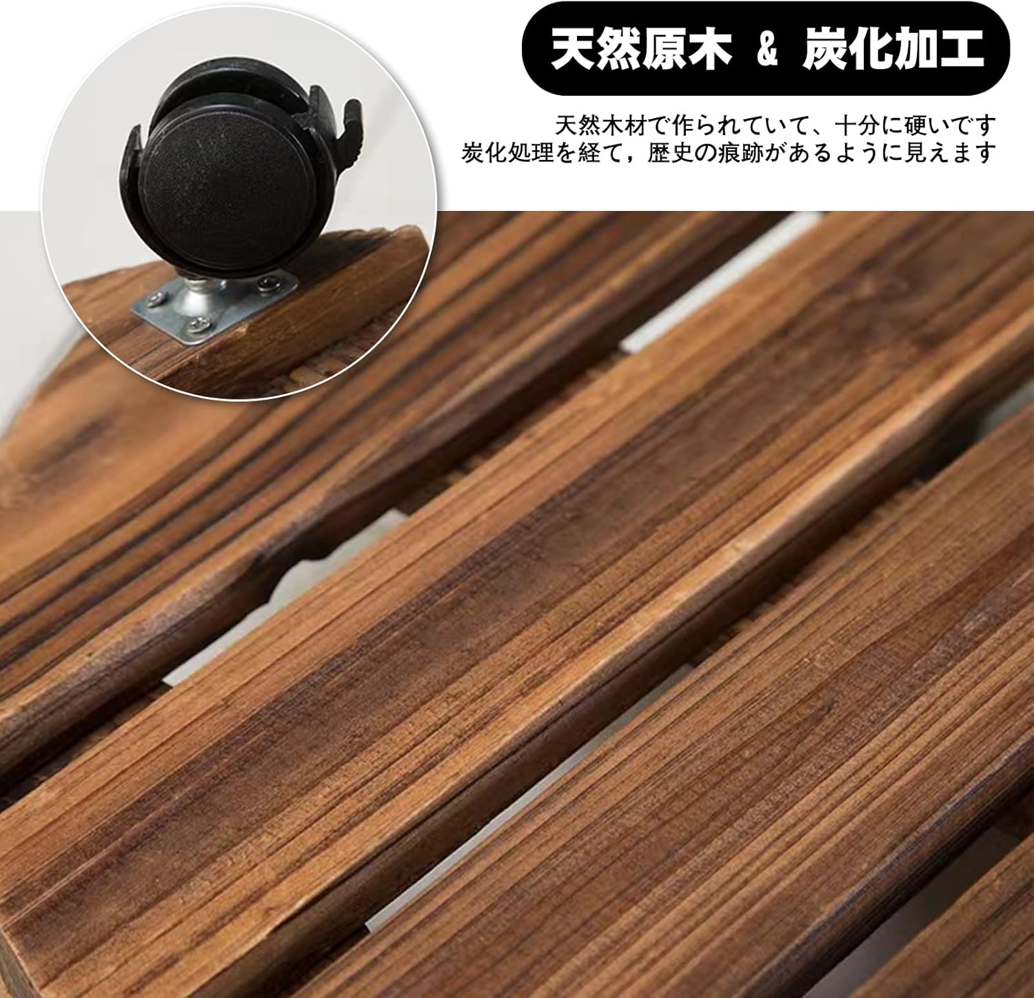 【簡単な操作】製品は組み合わせ不要で、受け取ったらそのまま使用できます。滑車は360度回転することができ、重い植木鉢でも簡単に移動することができます。木材の表面を炭化処理して長期にわたって水に浸しても腐食しない 、常に掃除をしなくてもいいです。