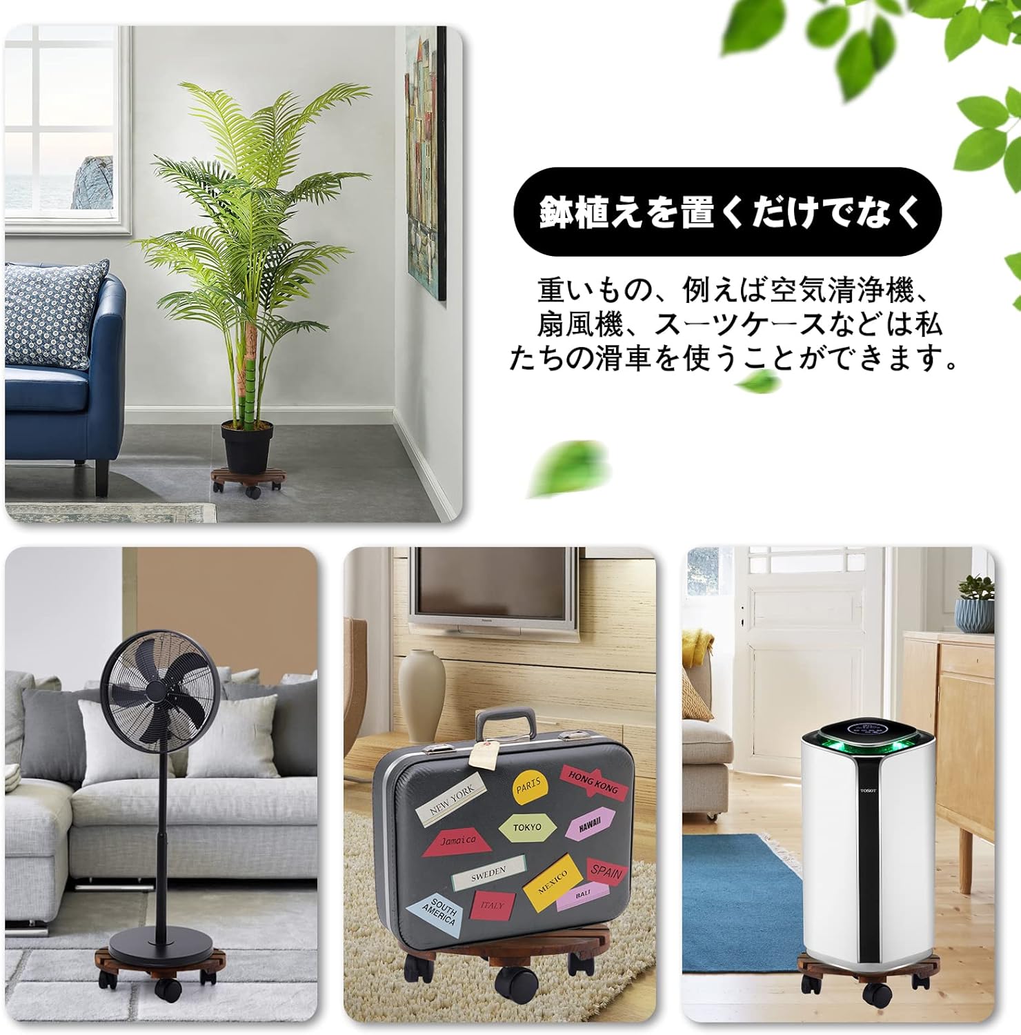 【多様な用途に対応】植木鉢や空気清浄機、扇風機を置くだけでなく、荷物や重いものを運びたいときは一時的にカートとして使うこともできます。十分な荷重なので、載せられるものなら何でも持ち運んで移動できるので便利です。