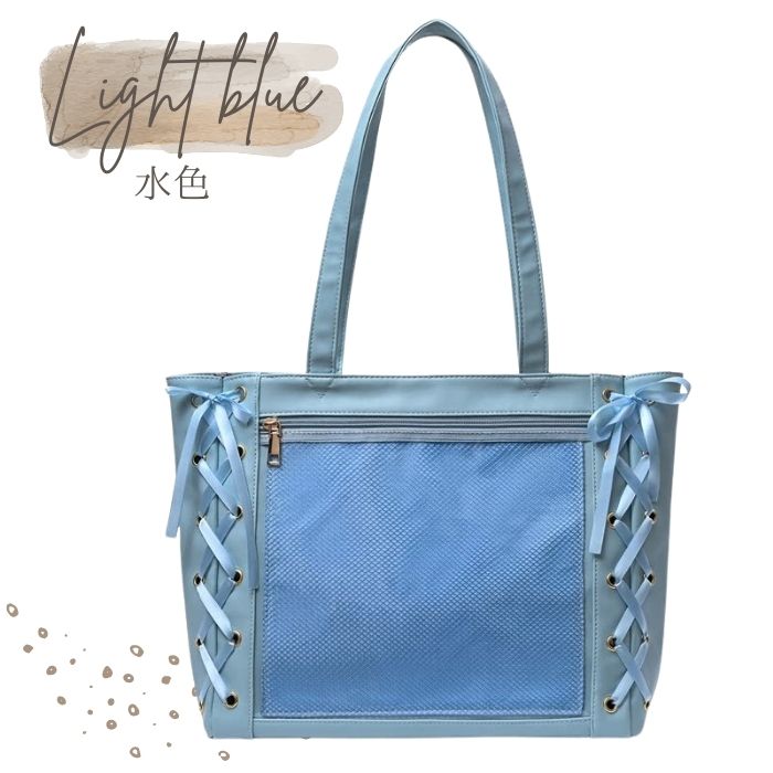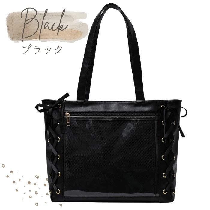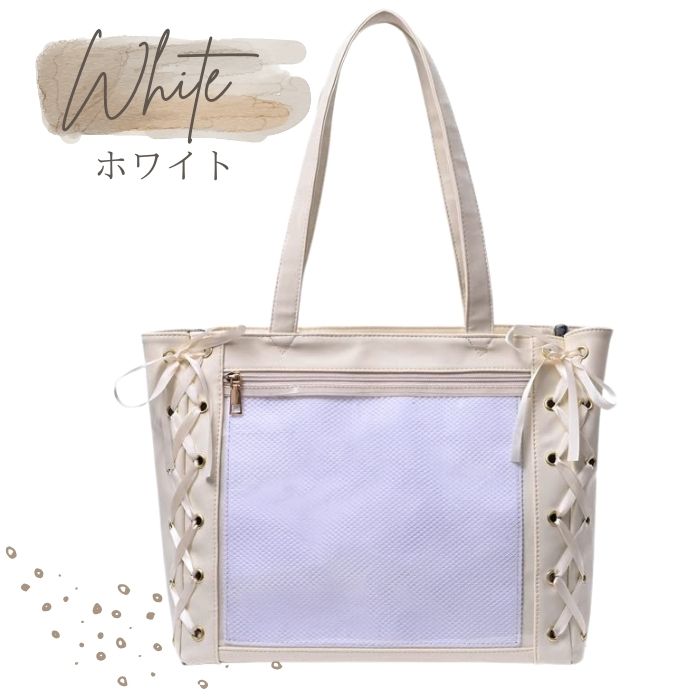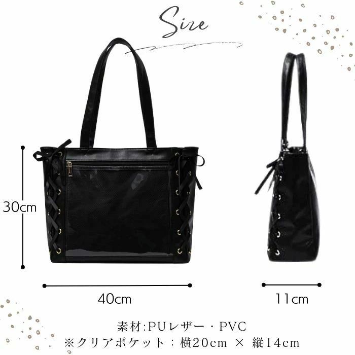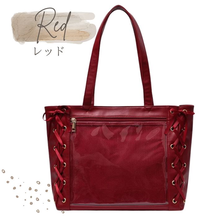 推し活バッグ 透明 大きめ リボン 大容量 トート 痛バ 痛バッグ レザー 推しバッグ 痛バック A4 革 レースアップ トートバッグ 推しごと