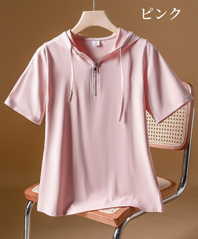 tシャツ レディース フード付 半袖 レディースファッション 新作 グレー ピンク ホワイト ブルー S M L XL 2XL 3XL