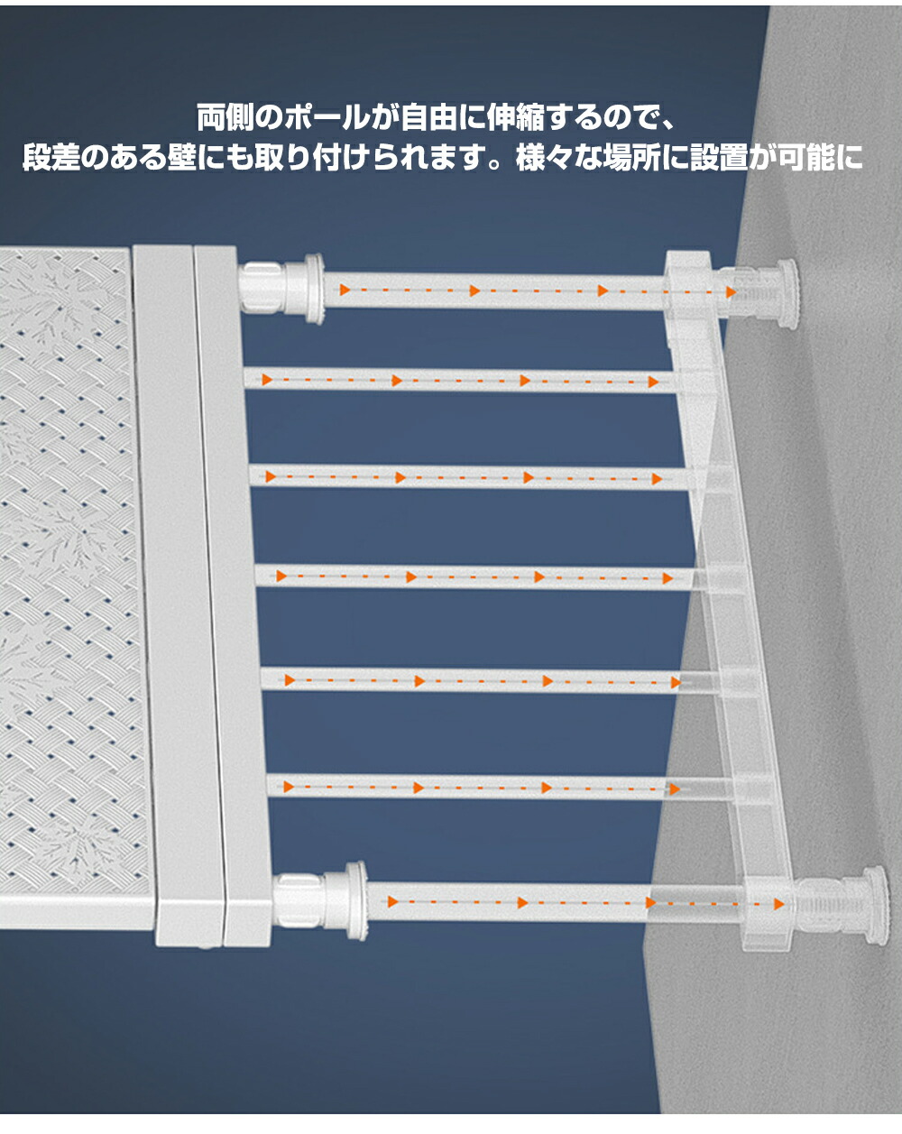 【多機能伸縮棚】すき間、玄関、浴室、キッチンなど場所に設置するとすっきり片付きます。クローゼット、シューズラック、収納棚、本棚、食器棚として使えます。立てて突っ張れば傘などが掛けられます。猫と小型犬を逃亡防止に利用できるだけでなく、お子さんの安全や防犯用柵代わります。