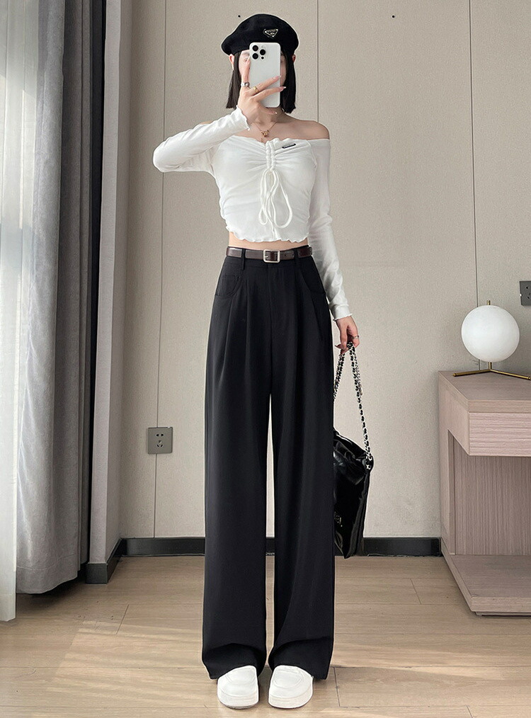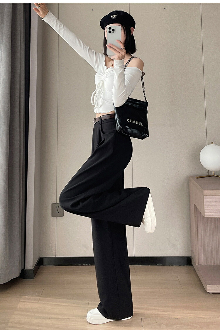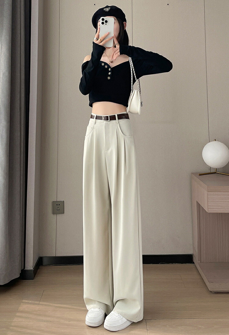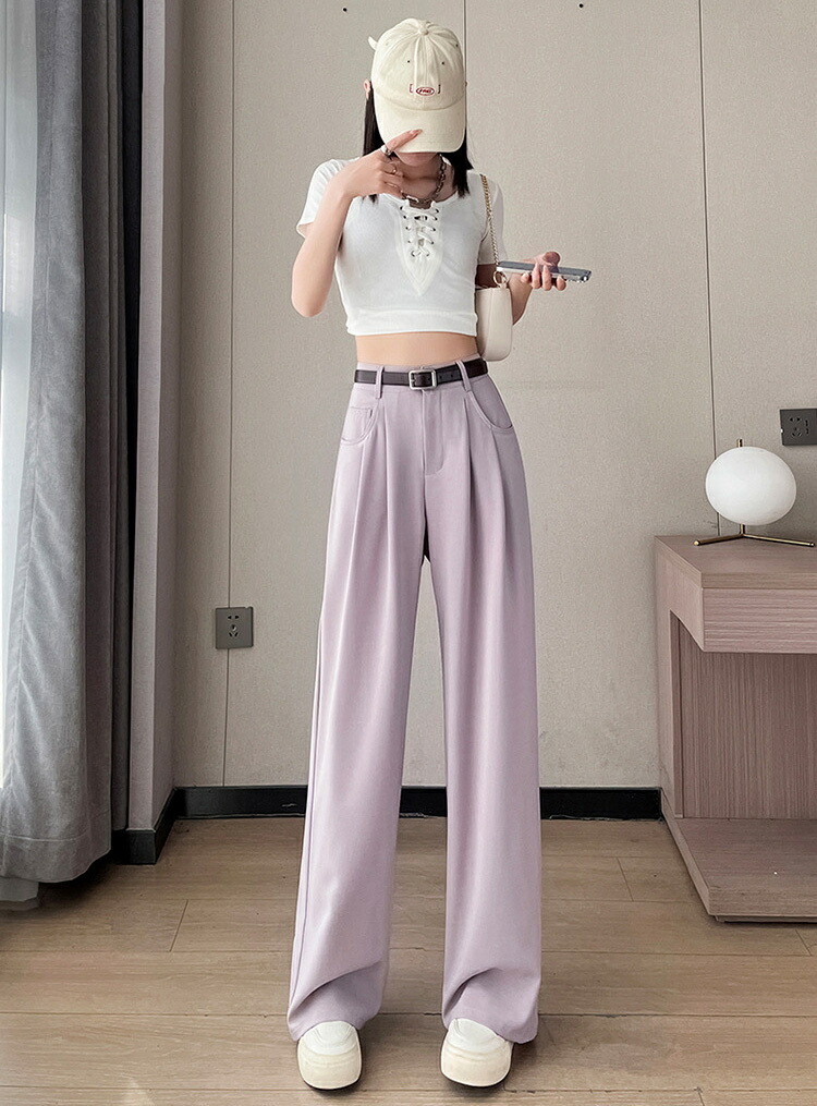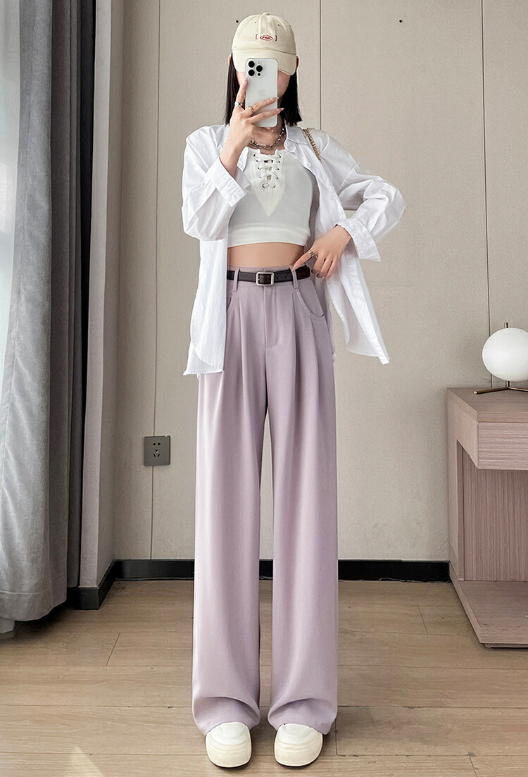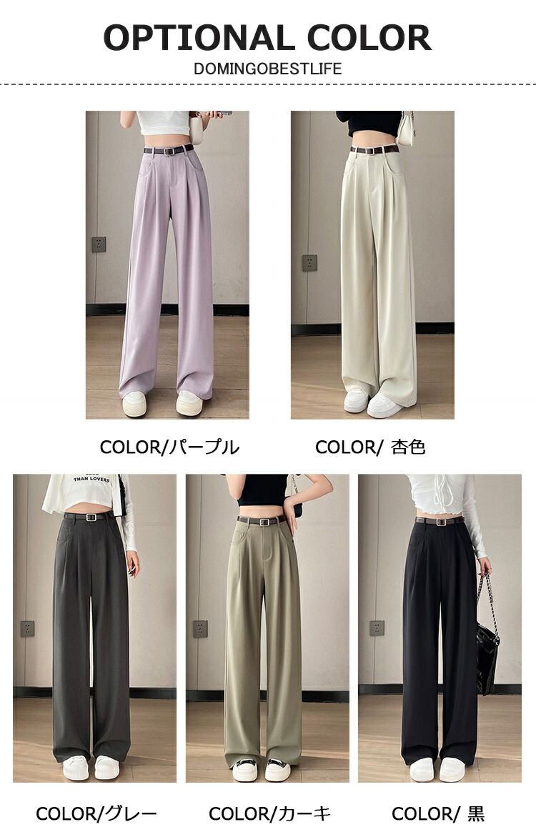 ワイドパンツ ハイウエスト 美脚 脚長 レディースファッション 新登場! XS S M L XL 2XL パープル 杏色 グレー カーキ 黒