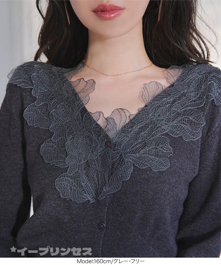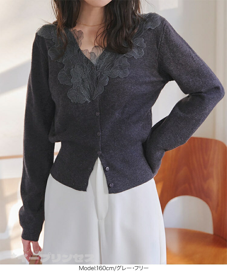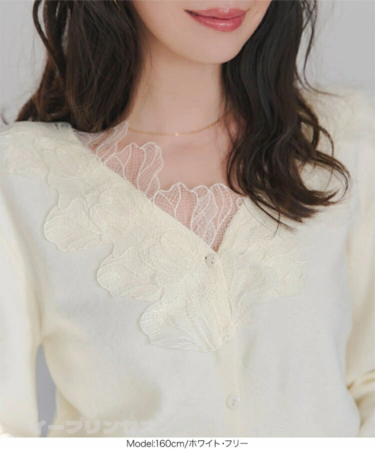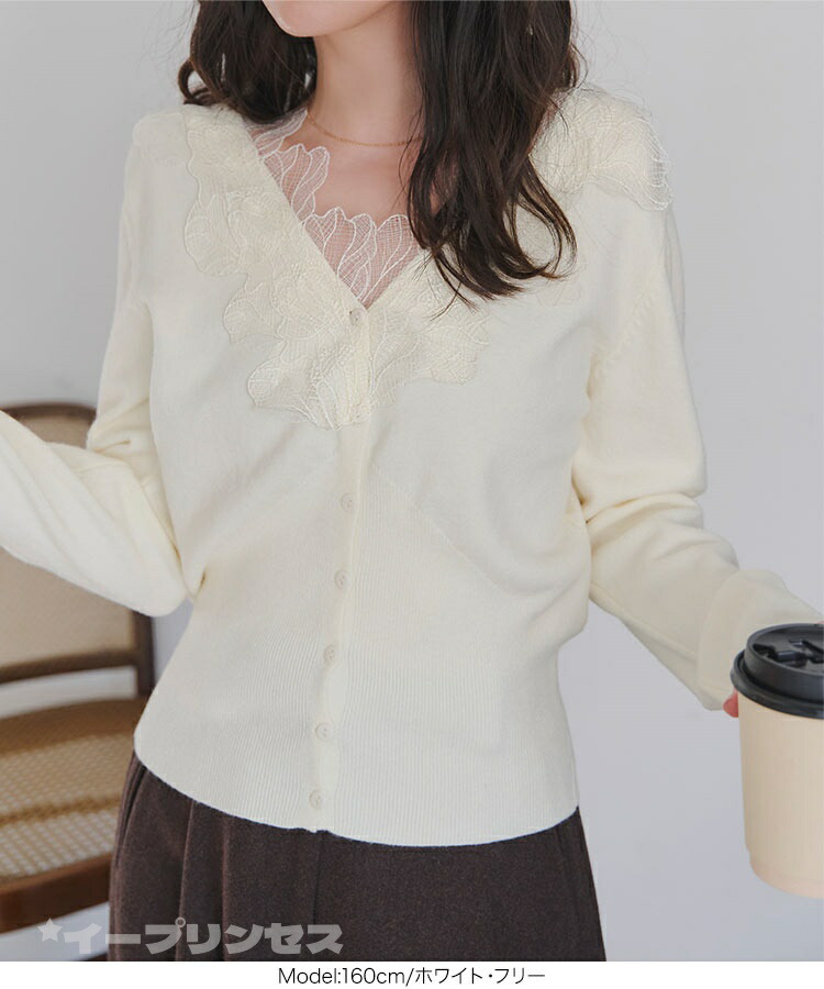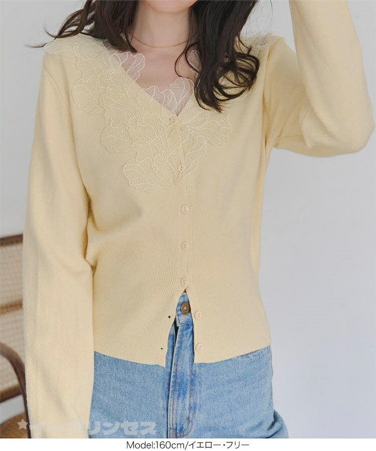 ニット カーディガン 襟レース ニット トップス ニット セーター その他 人気 ホワイト イエロー グレー