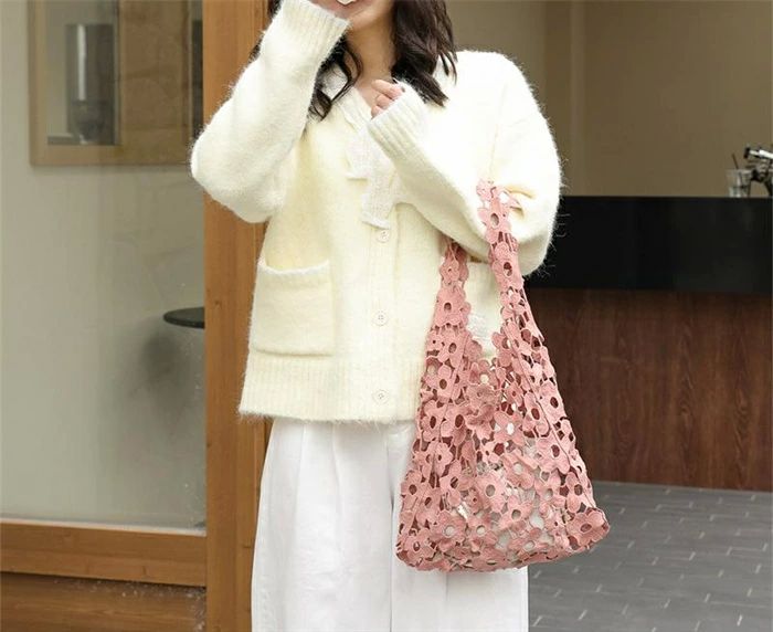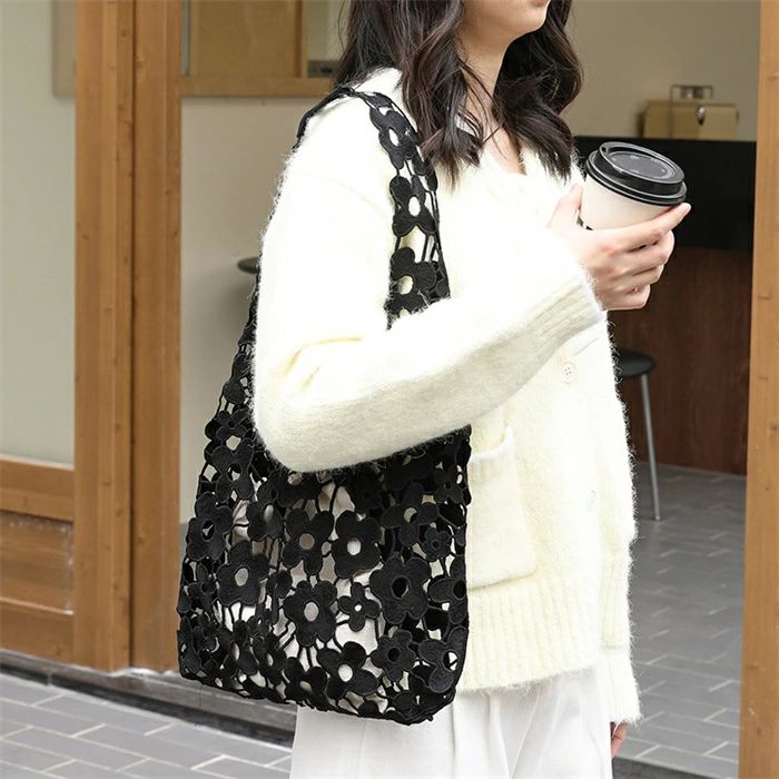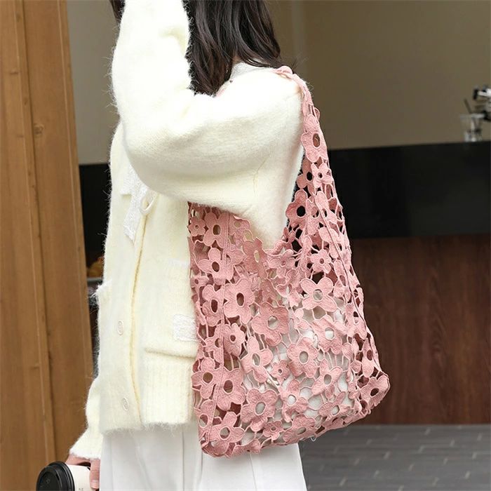 編みバッグ 透し編み かごバッグ レデ バッグ 小物 ブランド雑貨 超目玉商品 ブラック ピンク ホワイト キャメル