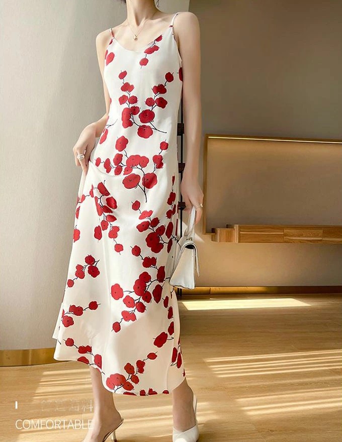 年代問わず可愛く着られるシルクキャミソールワンピースです。