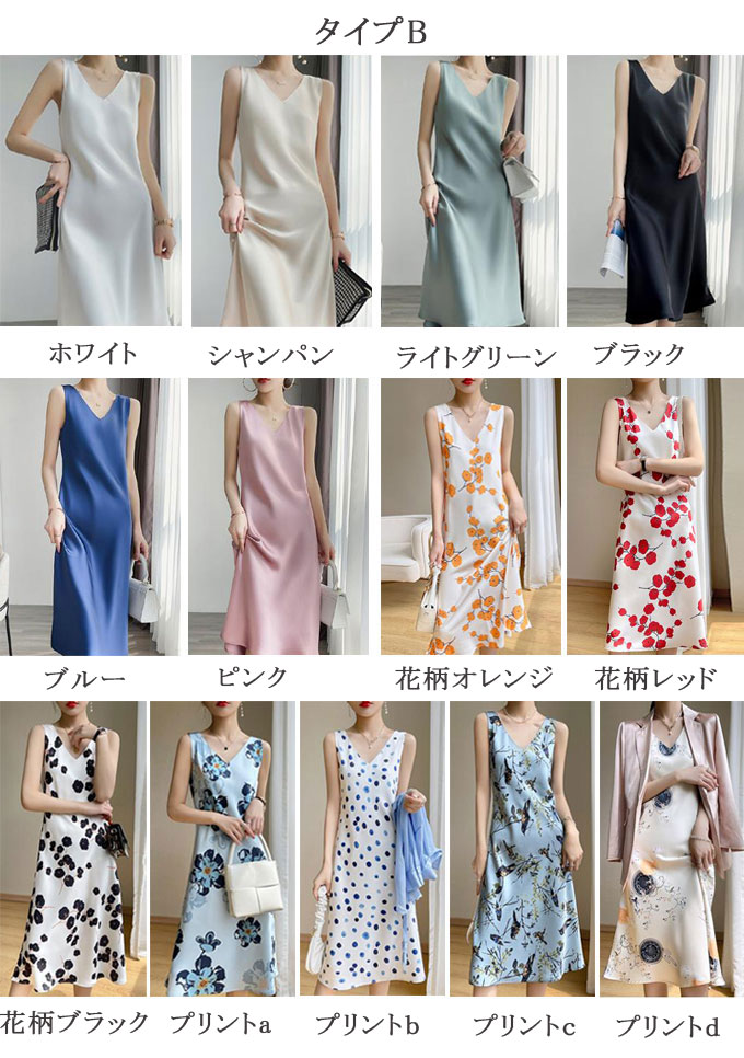 キャミソール ワンピース シルク レディース サテン風 インナーワンピース 吊りスカート Aライン ノースリーブ ノースリーブワンピ Vネック 無地 ロング丈 マキシワンピース ペチ 花柄