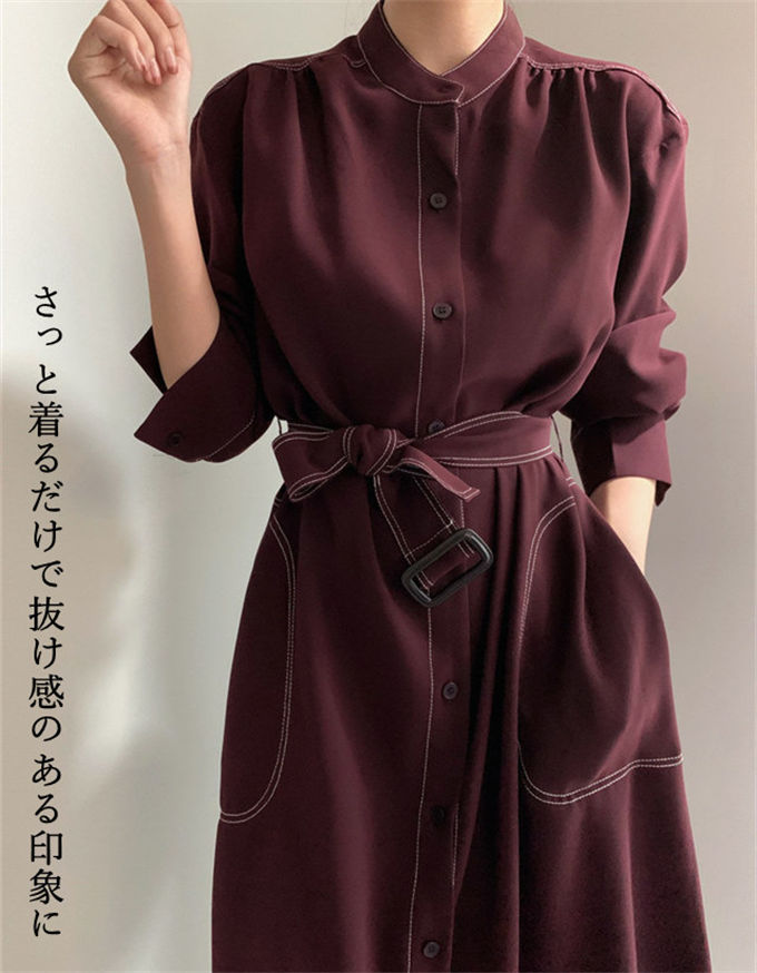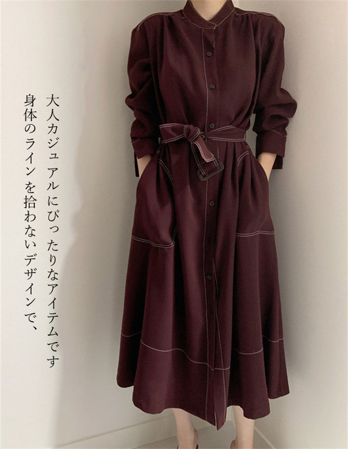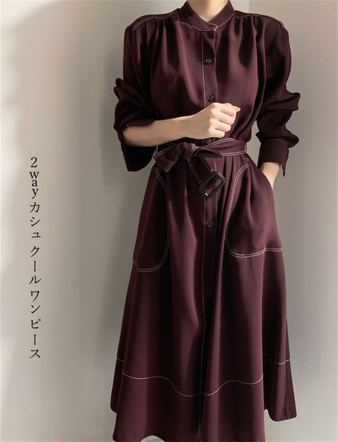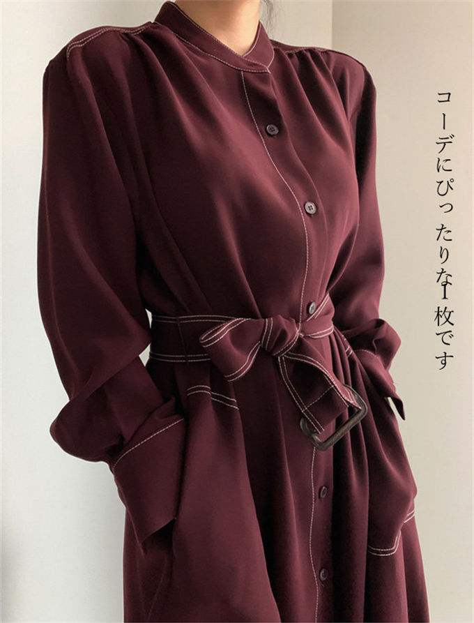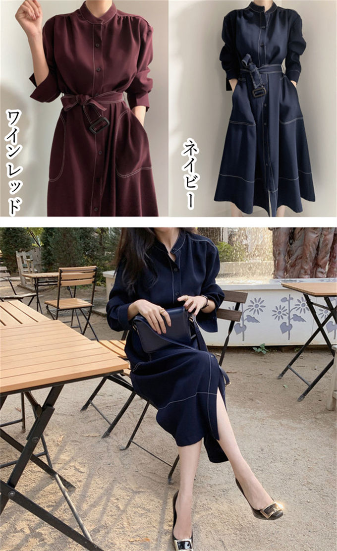 ワンピース シャツワンピース レディー レディースファッション 新登場! ネイビー ワインレッド S M L