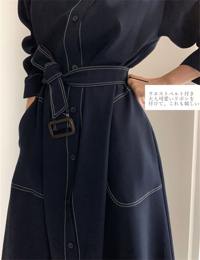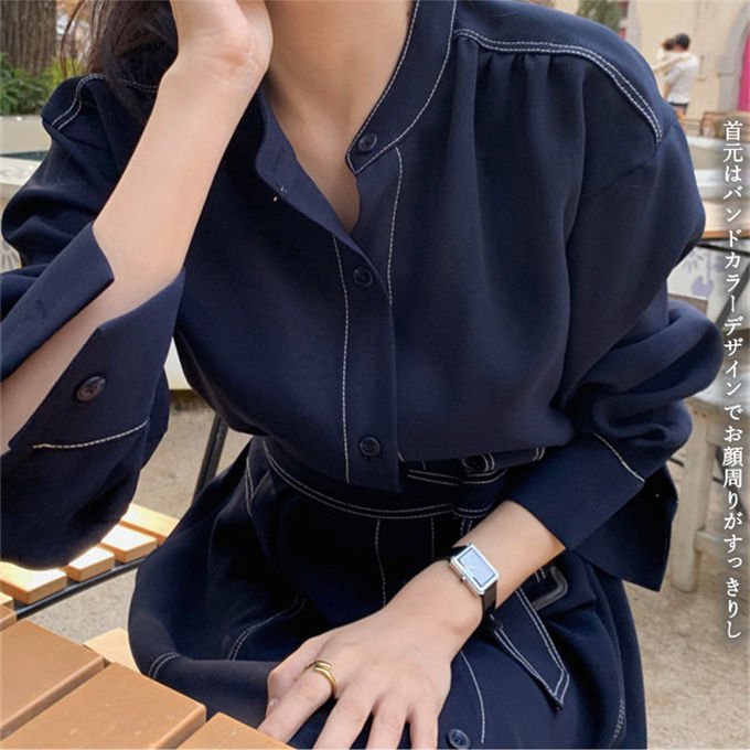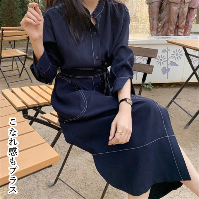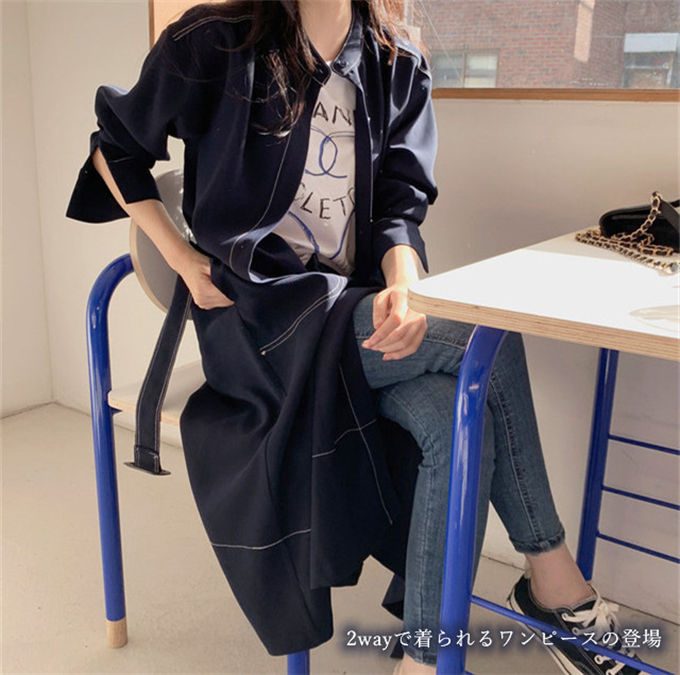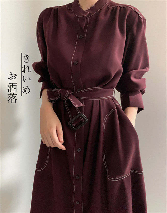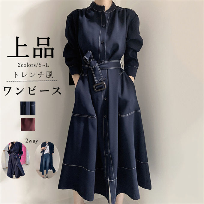 ワンピース シャツワンピース レディー レディースファッション 新登場! ネイビー ワインレッド S M L
