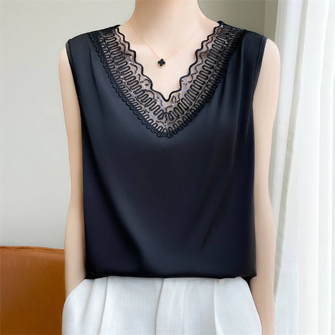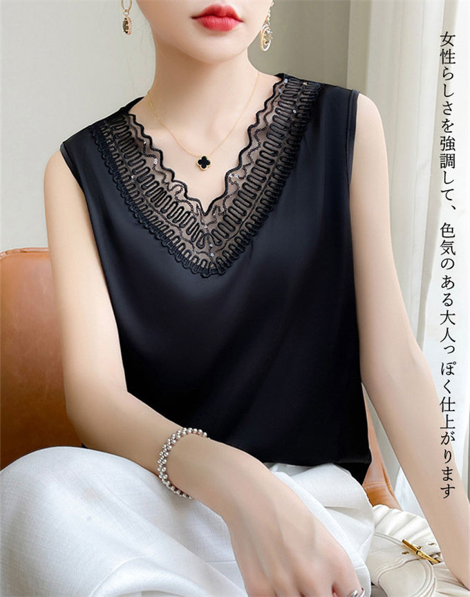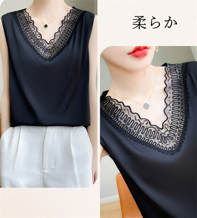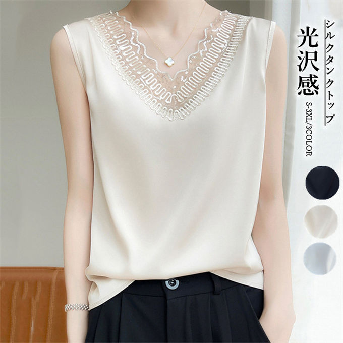 タンクトップ シルク レース キャミソ レディースファッション 超目玉商品 ブラック ホワイト ベージュ S M L XL 2XL 3XL